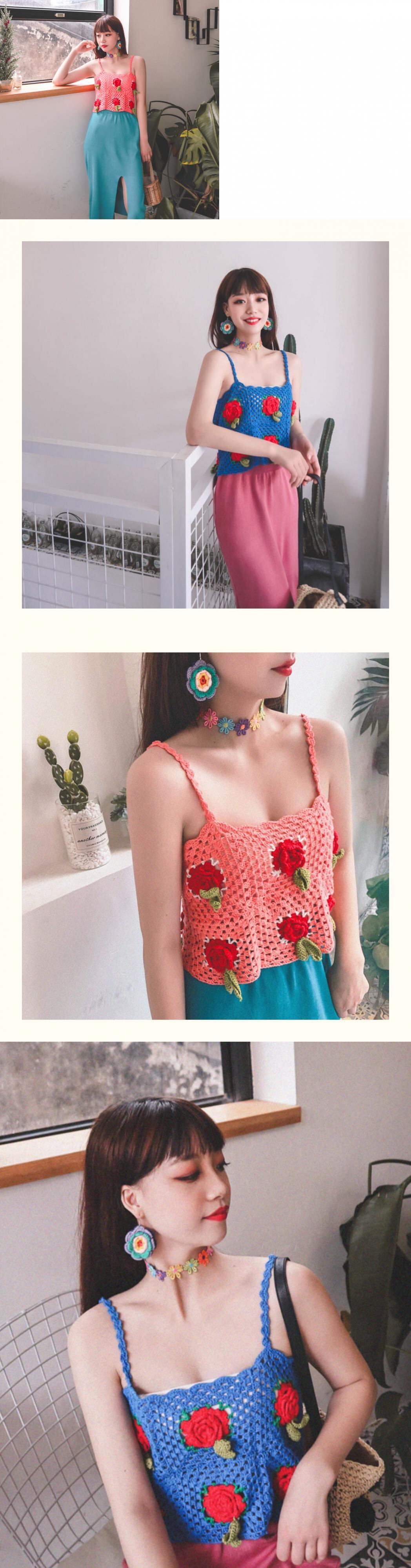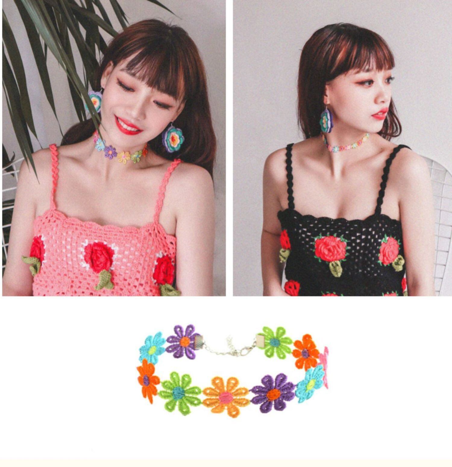 スプリングサマー刺繍カラーエスニックスタイルネックレス レース 春物 夏物 フラワーデザイン 延命家ファッション13316341934