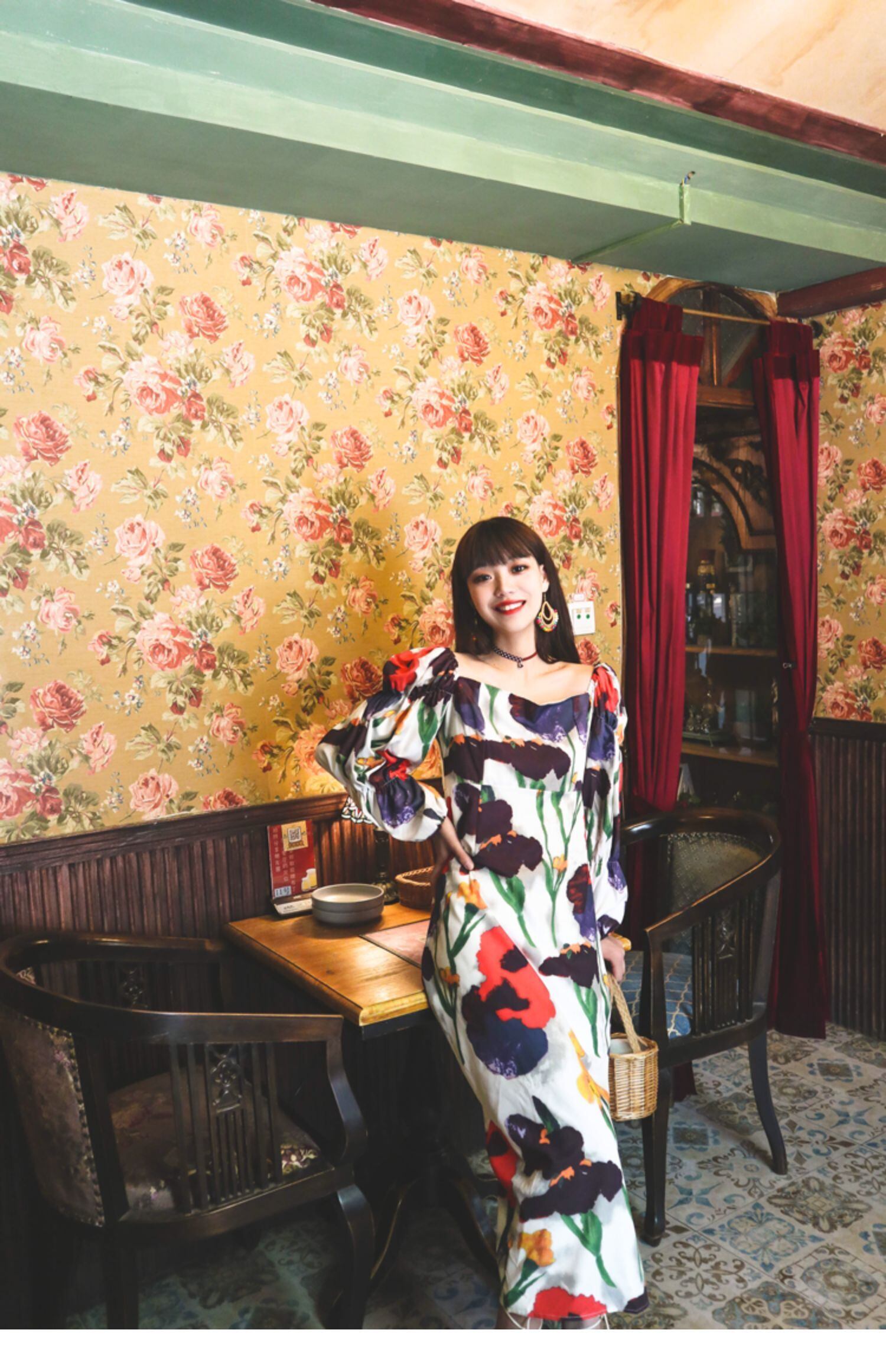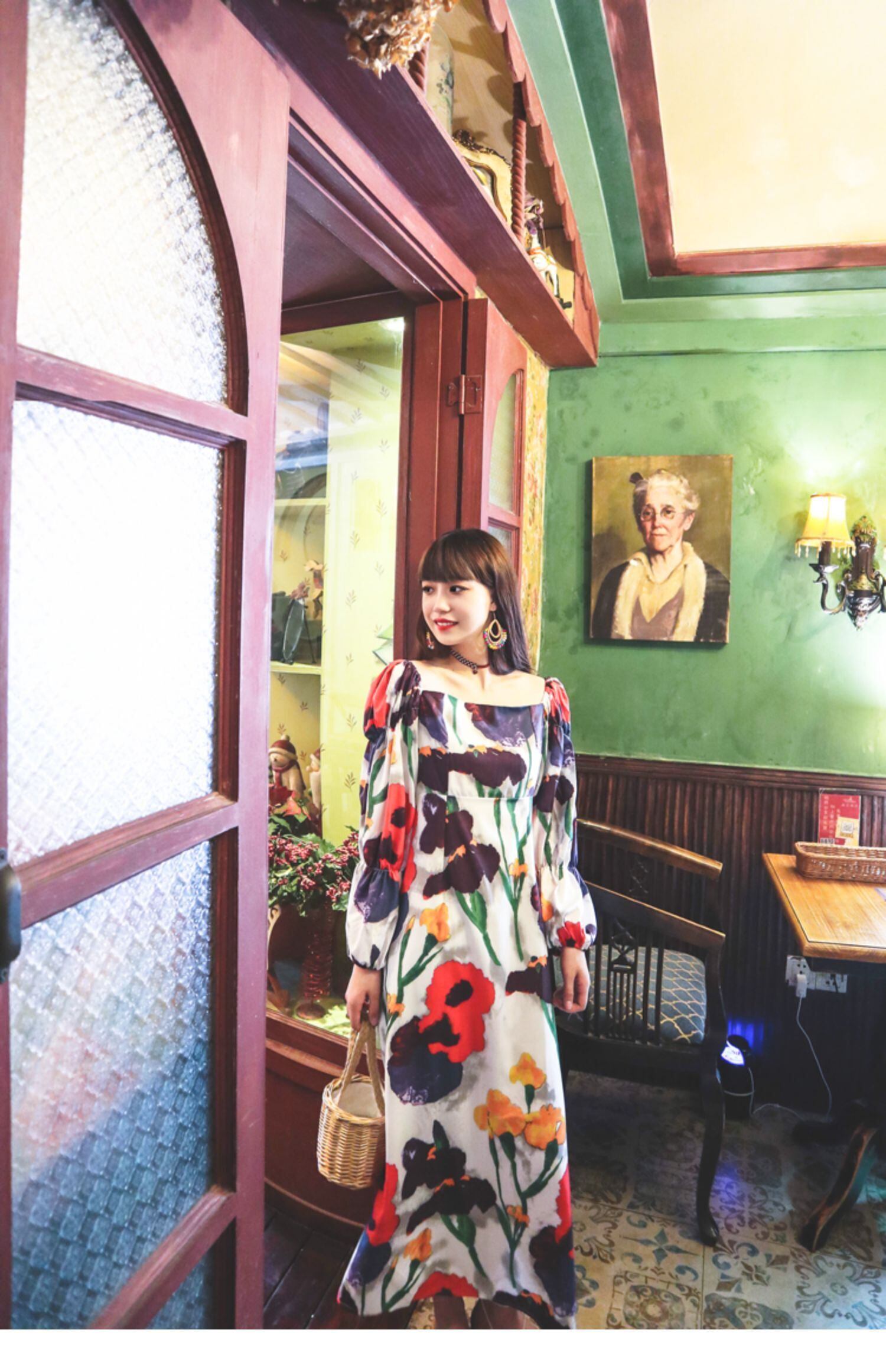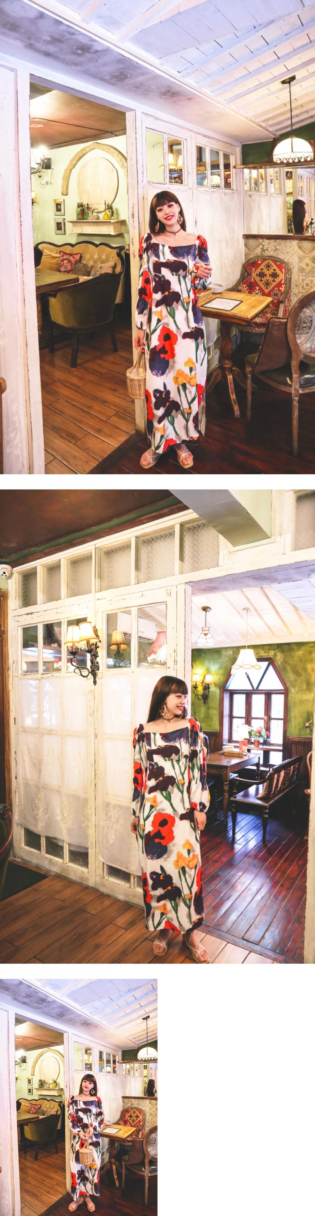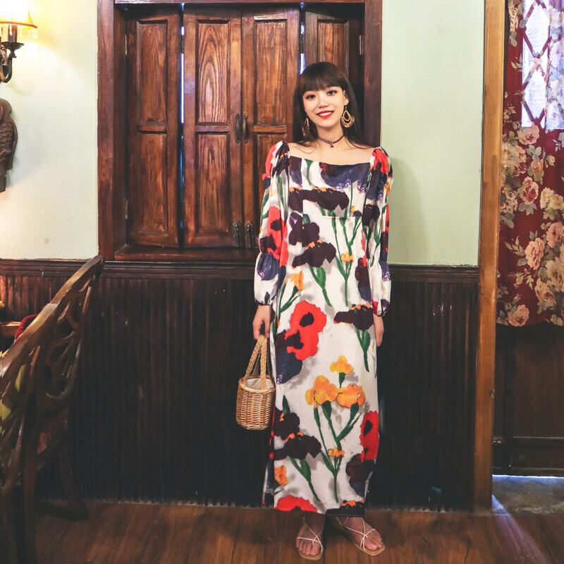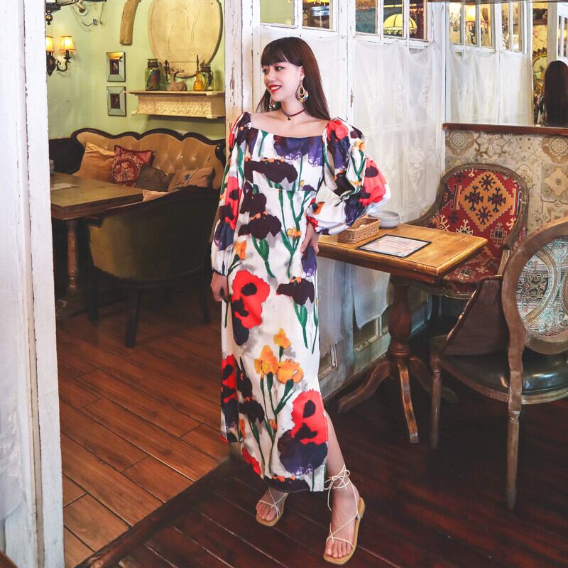 スプリングスタンダードロングスカート Flowerデザイン プリント柄エスニックスタイルカラードレス レトロ レース 春物 フラワーデザイン スクウェア 延命家ファッション19516427066