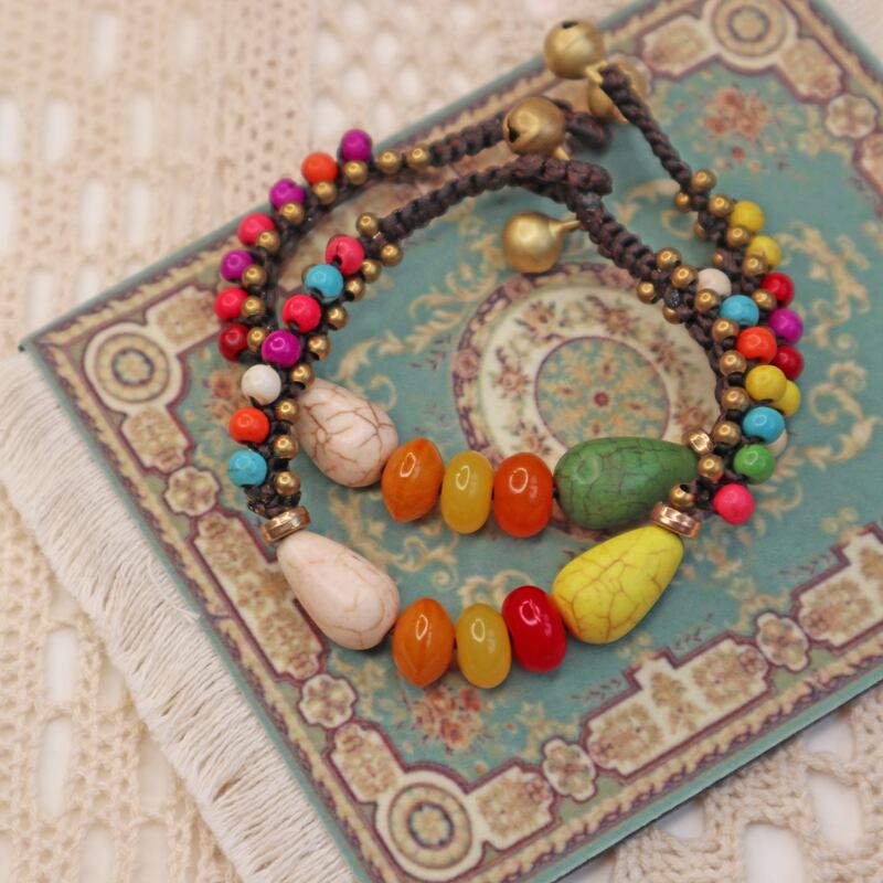 エスニックスタイルスタンダードアクセサリー カラーブレスレット レトロ ターコイズ 延命家ファッション82851815784