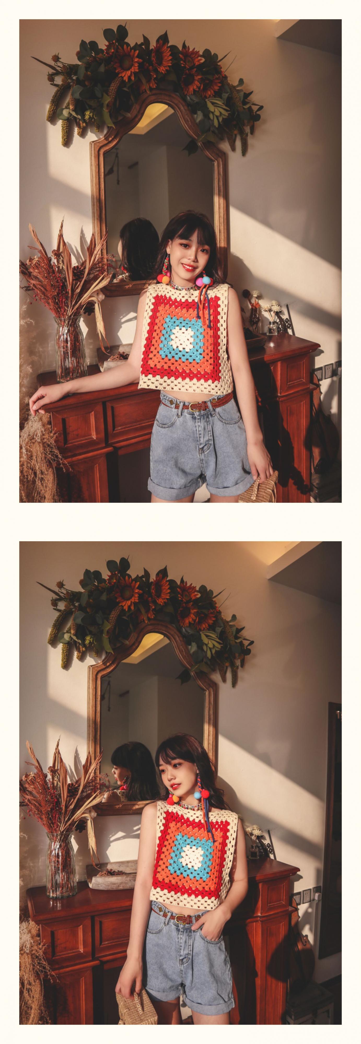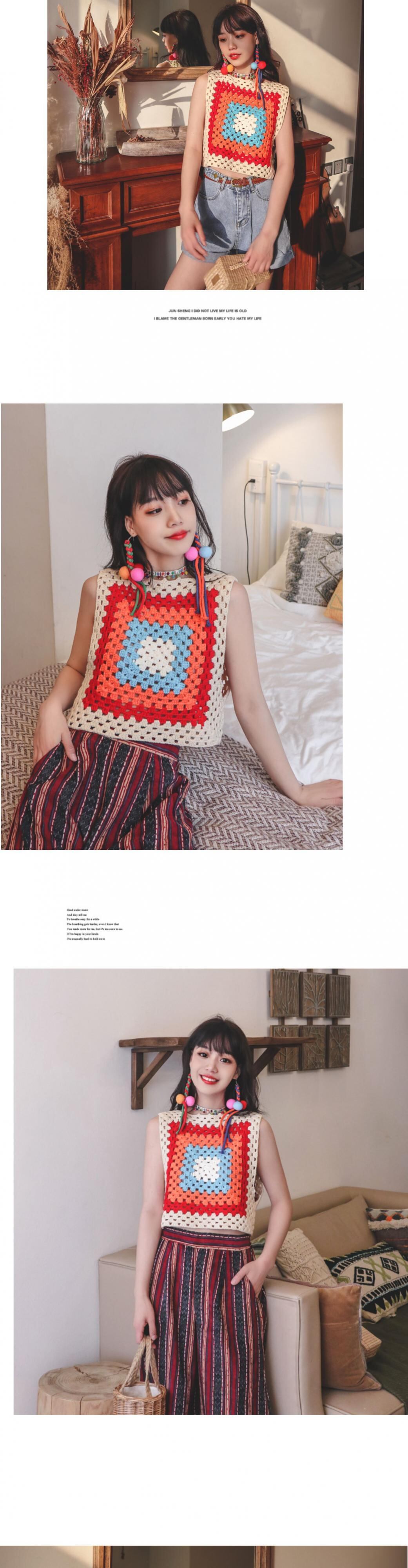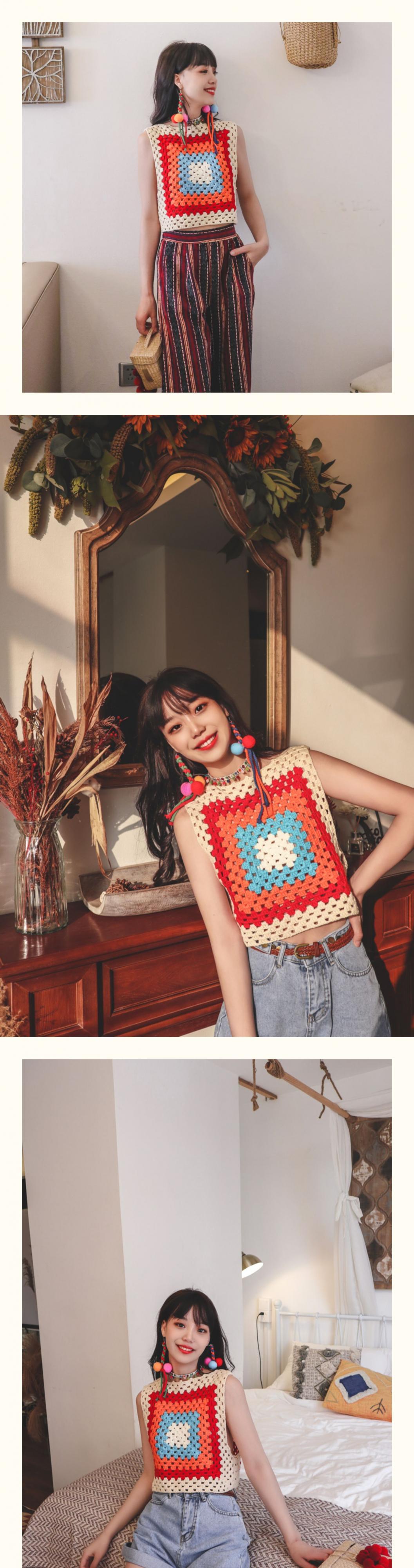 ボヘミアンサマースタンダードFlowerデザイン カラーエスニックスタイルトップス レトロ 夏物 フラワーデザイン 延命家ファッション14499686058