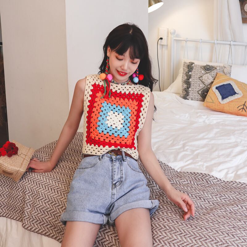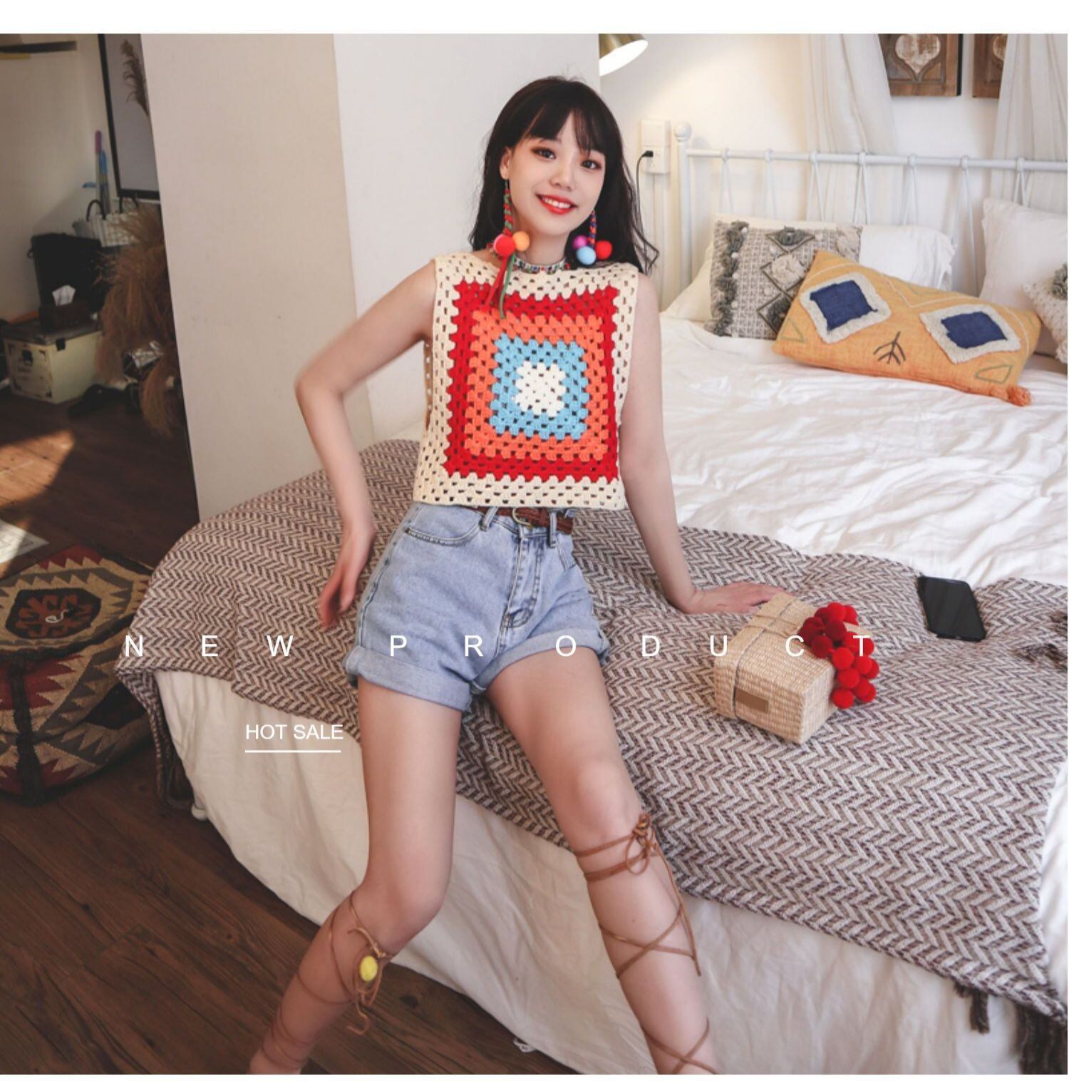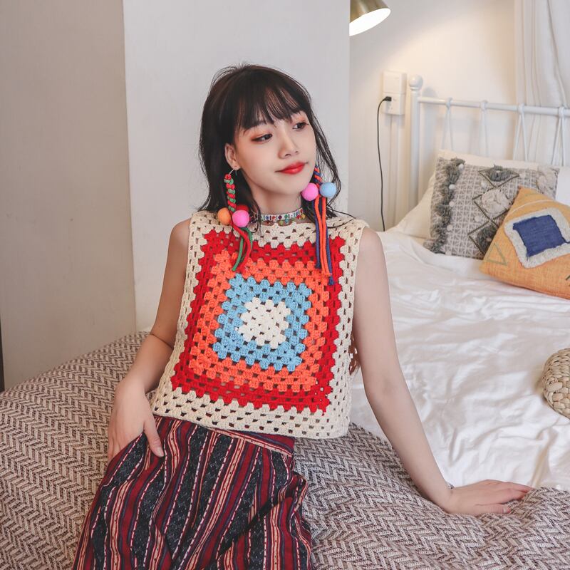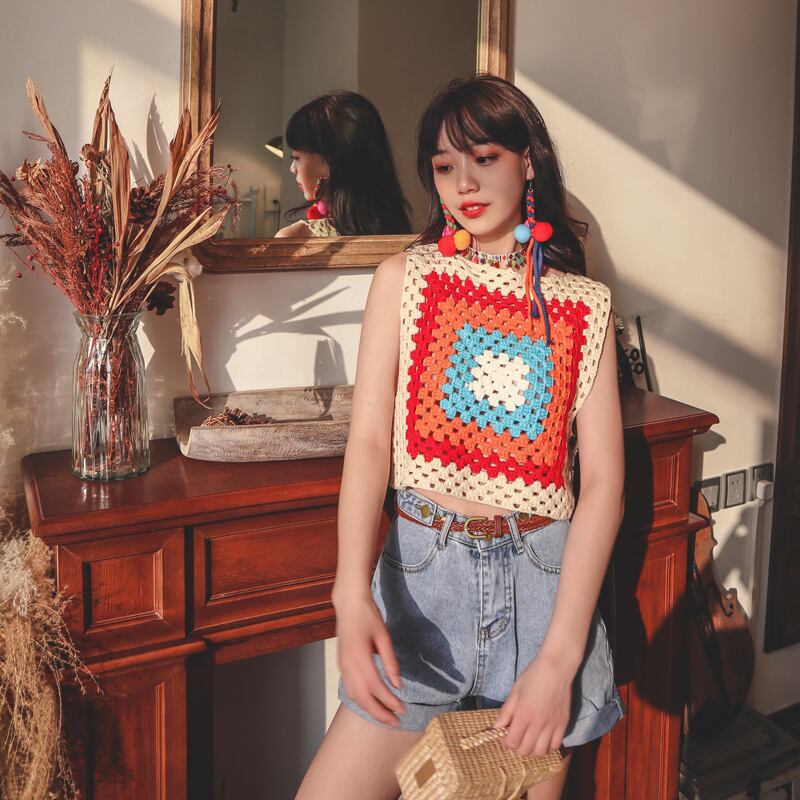 ボヘミアンサマースタンダードFlowerデザイン カラーエスニックスタイルトップス レトロ 夏物 フラワーデザイン 延命家ファッション14499686058