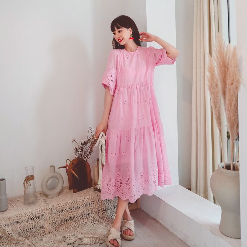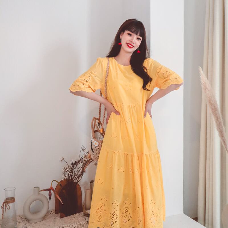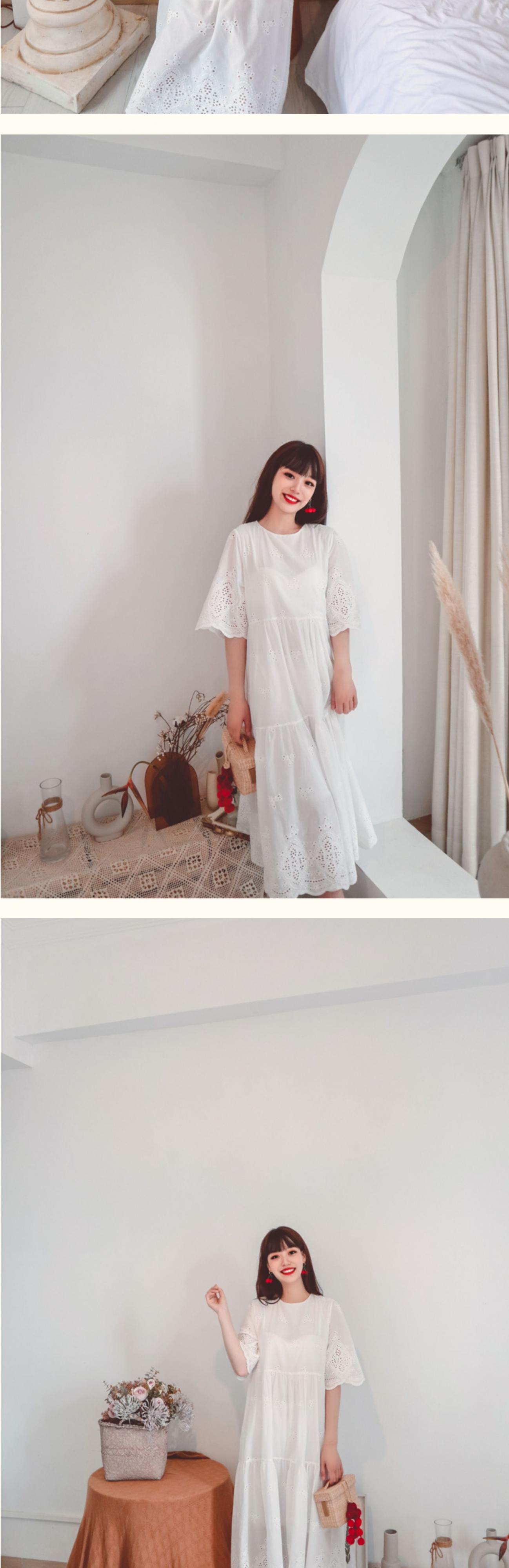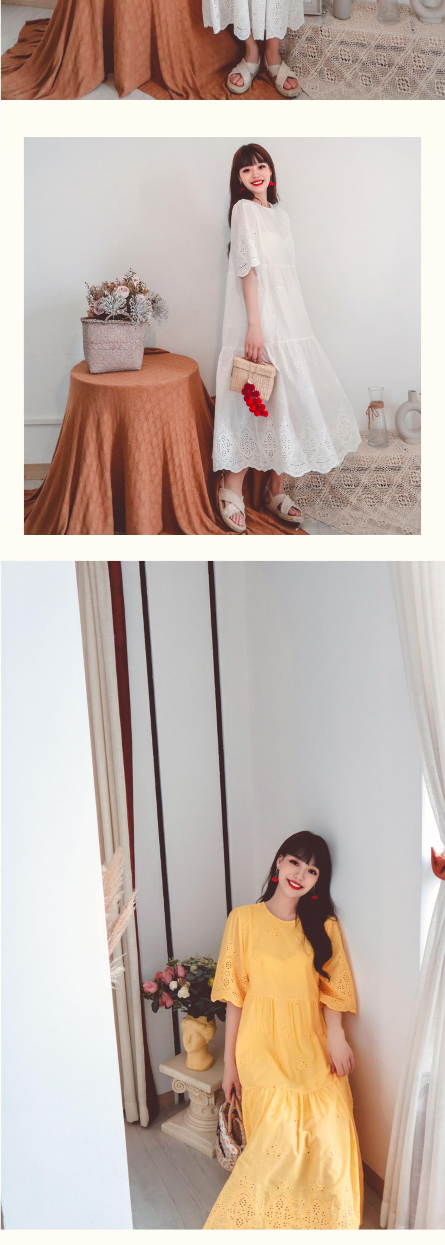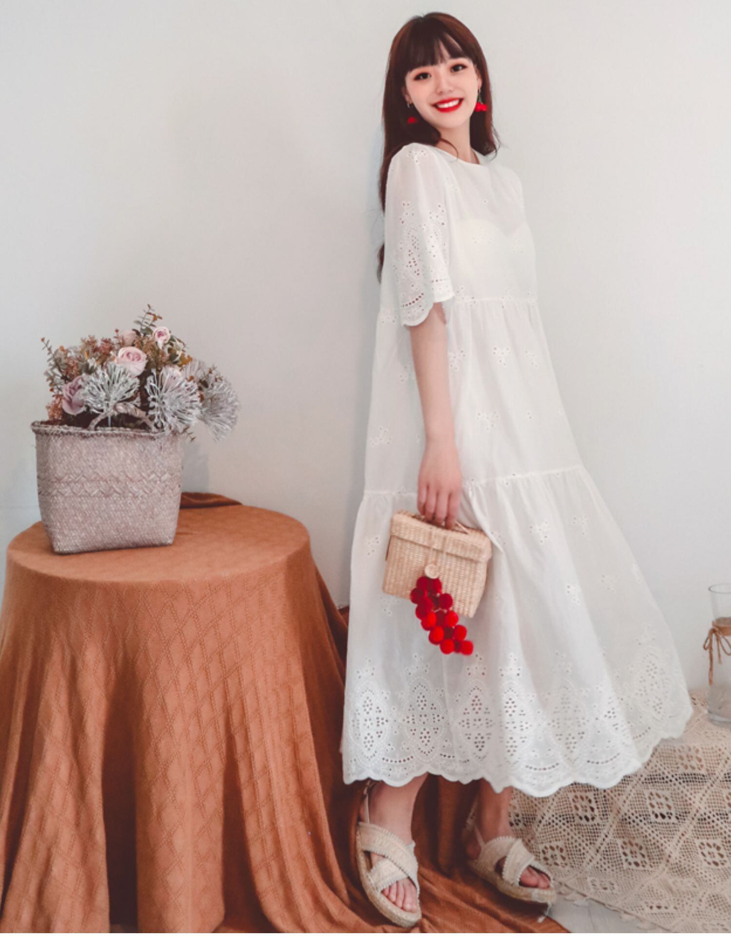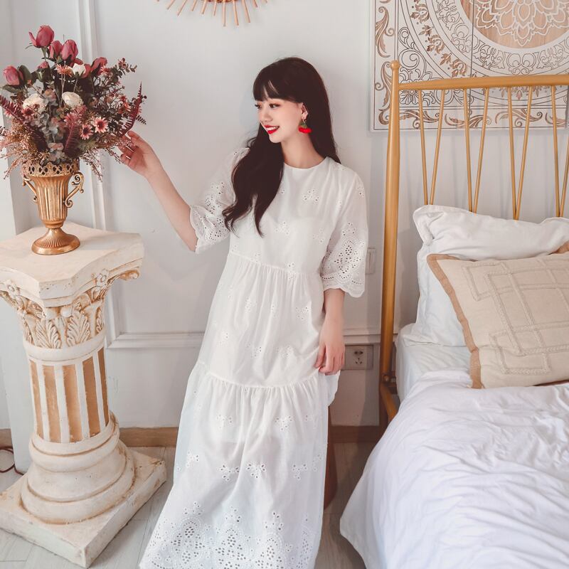 ボヘミアンホワイトロングスカート スタンダードレースドレス レトロ 大人ガーリー スウィート キュート カジュアル 延命家ファッション65425641572