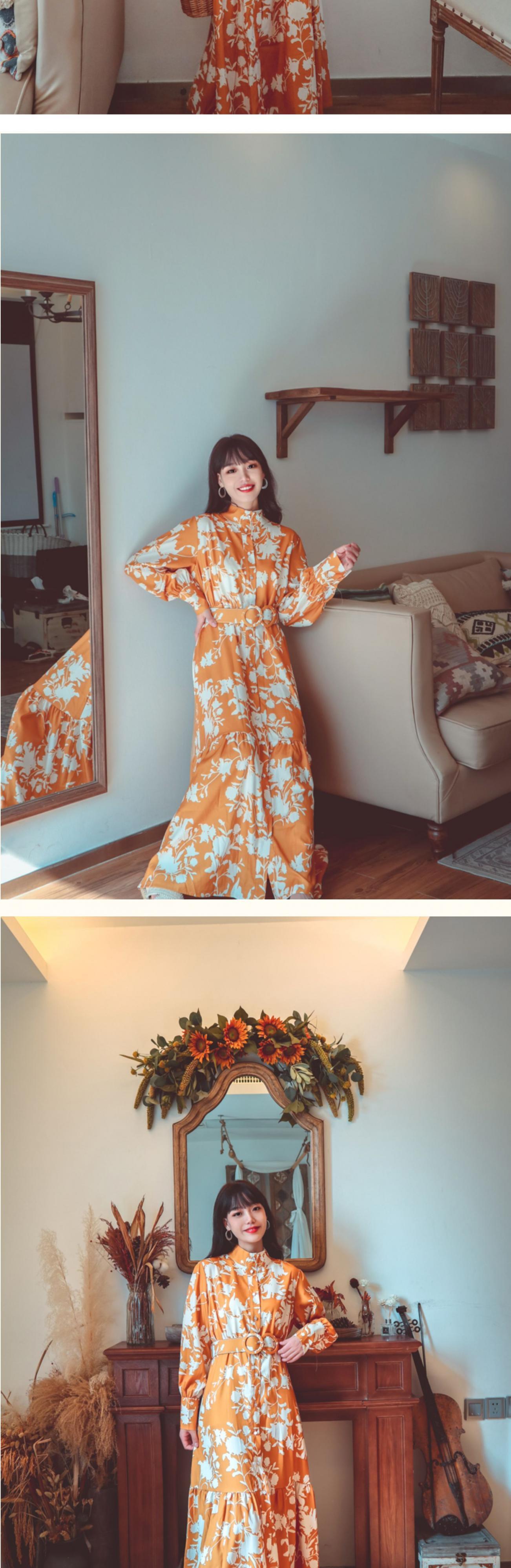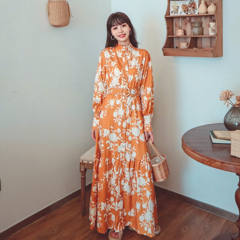 スタンダードロングボヘミアンエスニックスタイルプリント柄ウェストドレス レトロ スカート 延命家ファッション12037851299