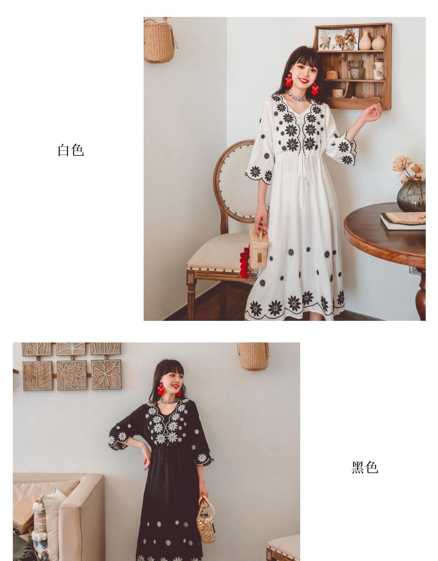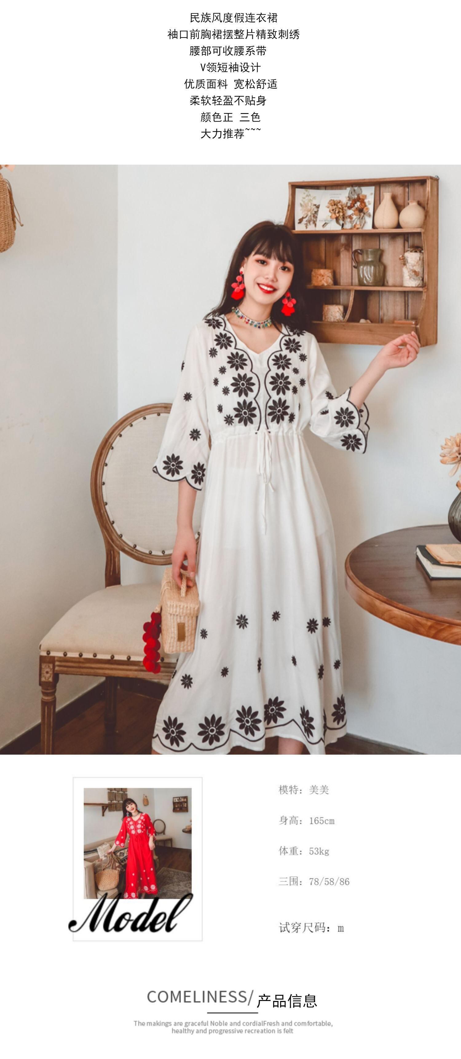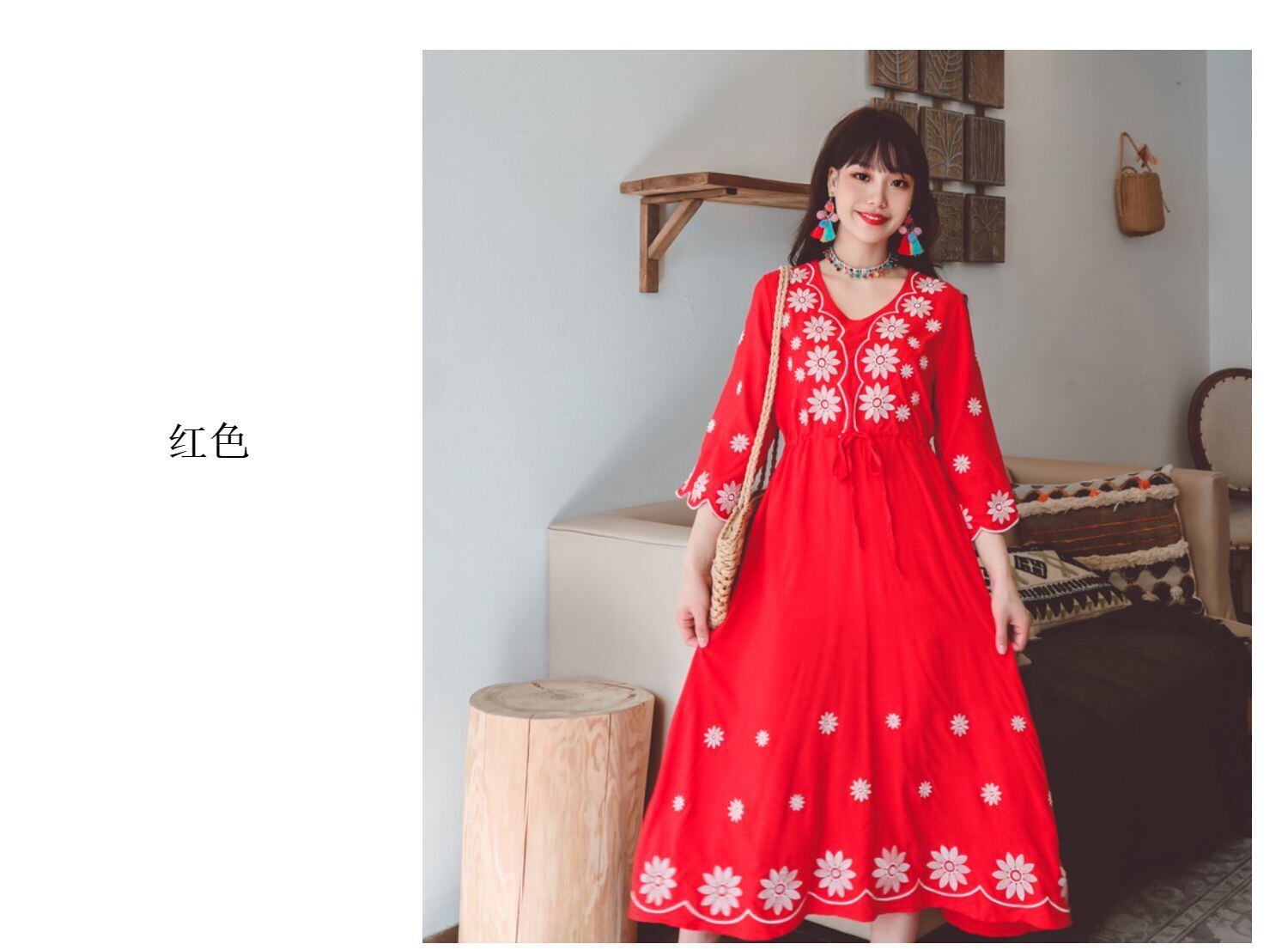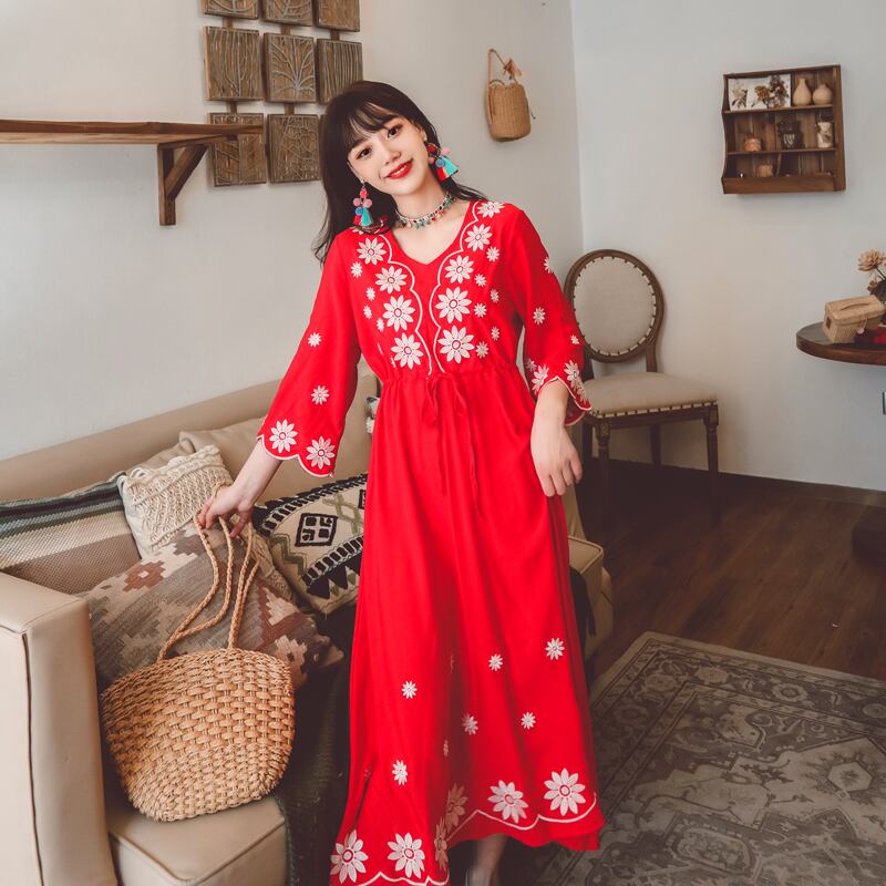 ボヘミアンエスニック刺繍スタンダードロングスカート ドレス レトロ 延命家ファッション47671927917