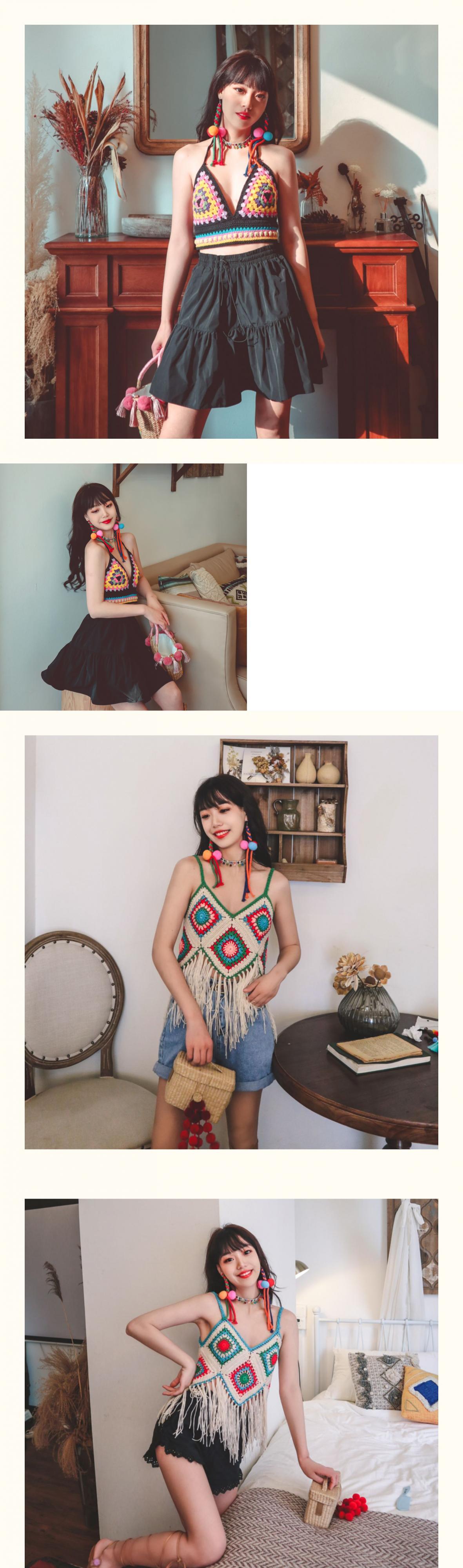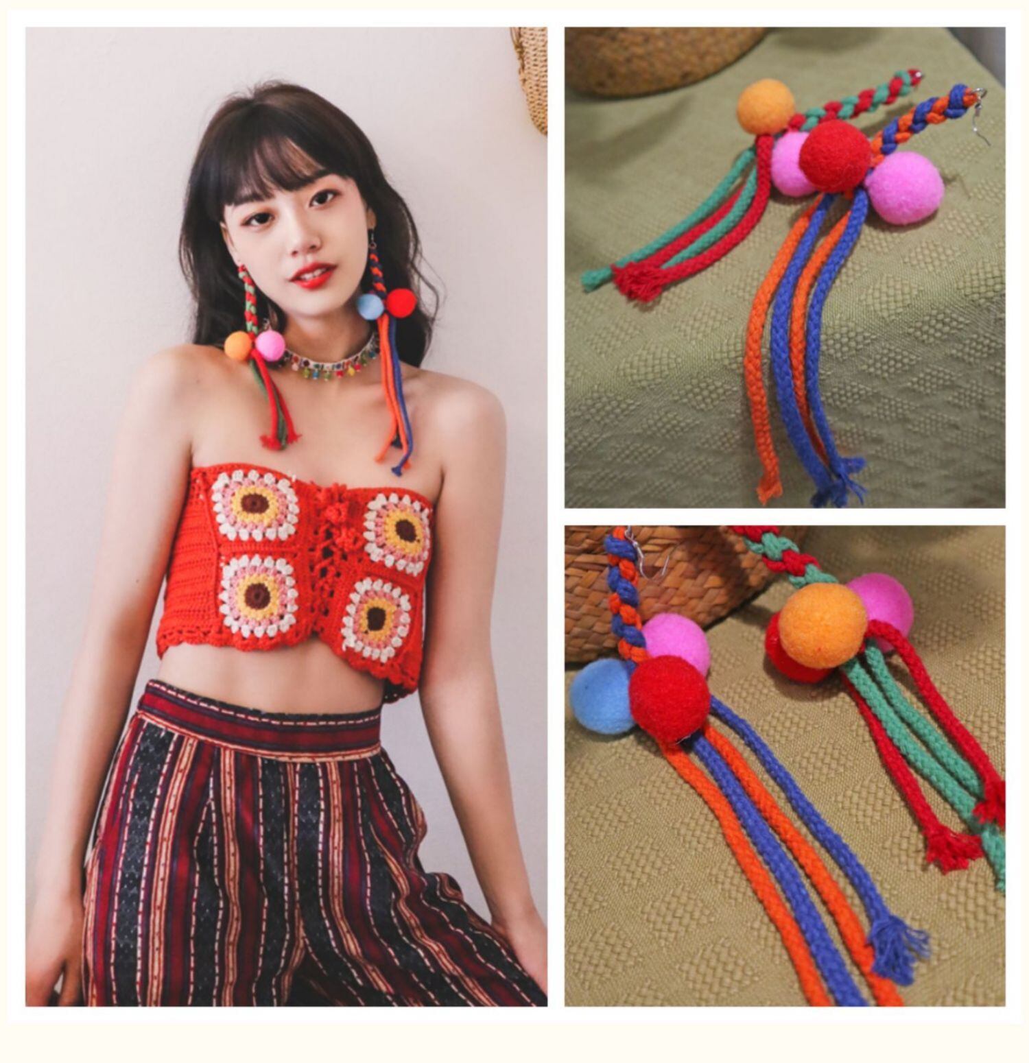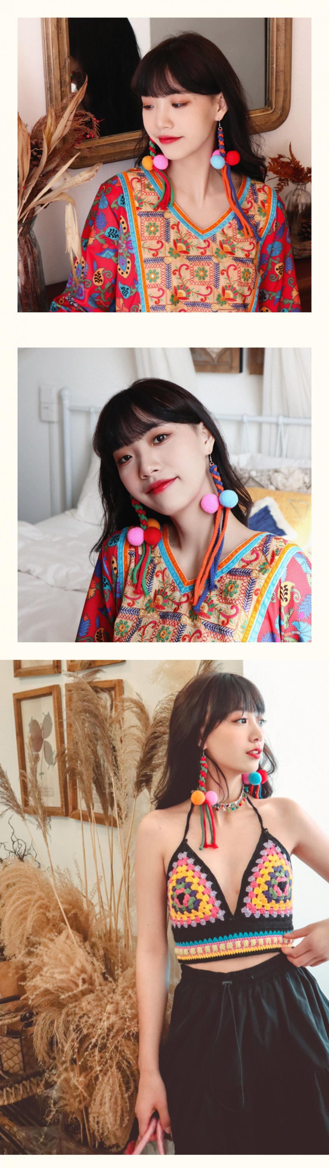 ボヘミアンスタンダードエスニックスタイルウールカラーロングイヤリング レトロ 指輪 延命家ファッション37572437380