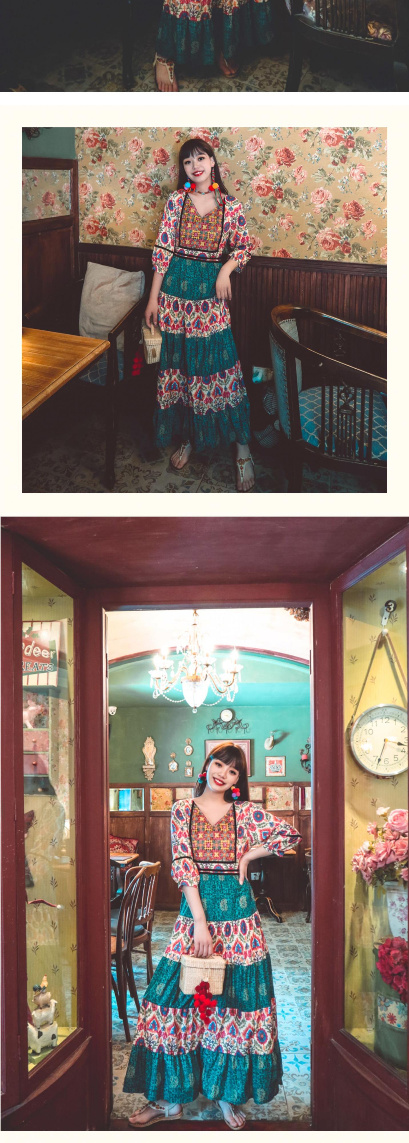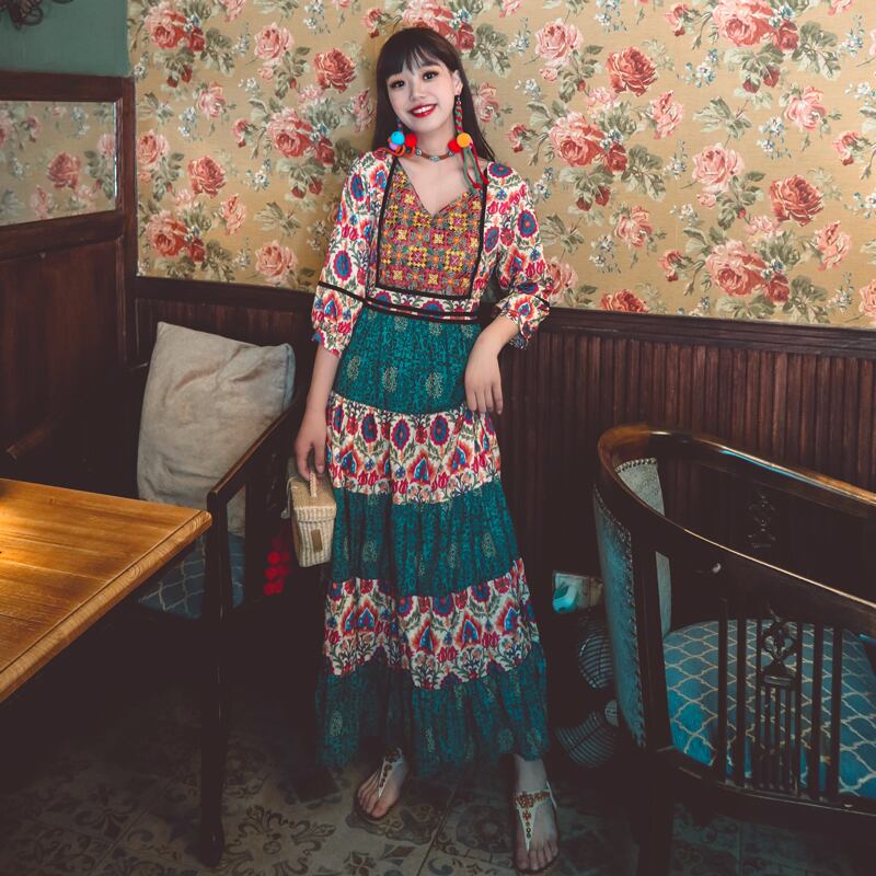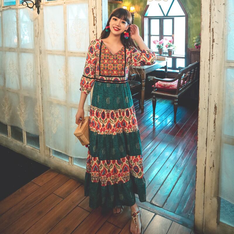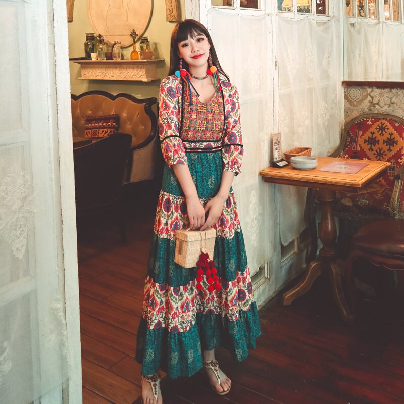 スタンダードロングスカート 刺繍プリントドレス サマー レトロ 夏物 延命家ファッション52504438470
