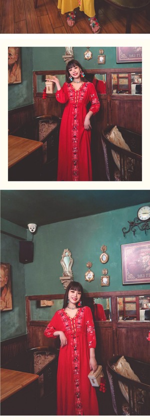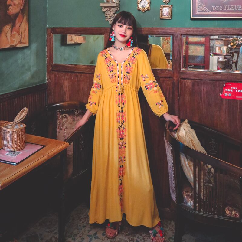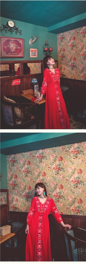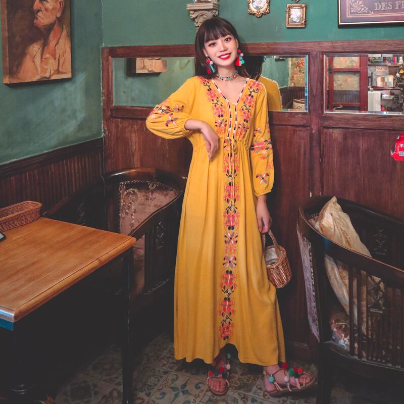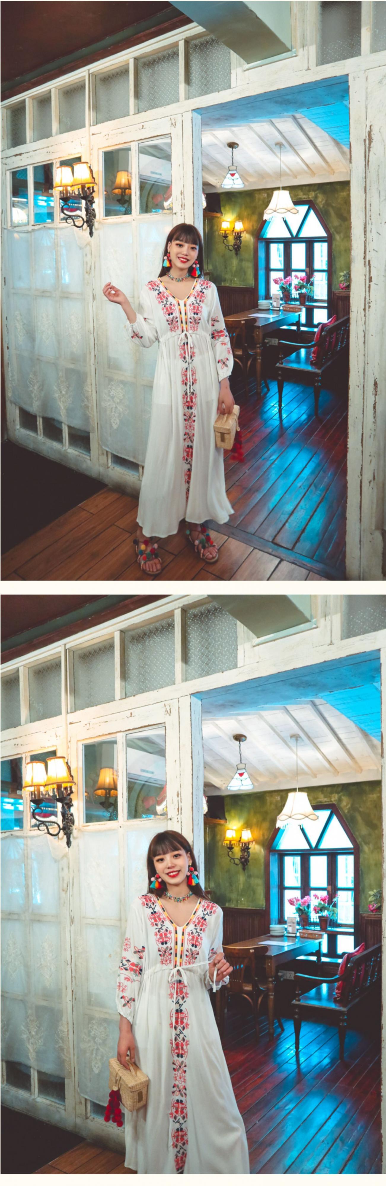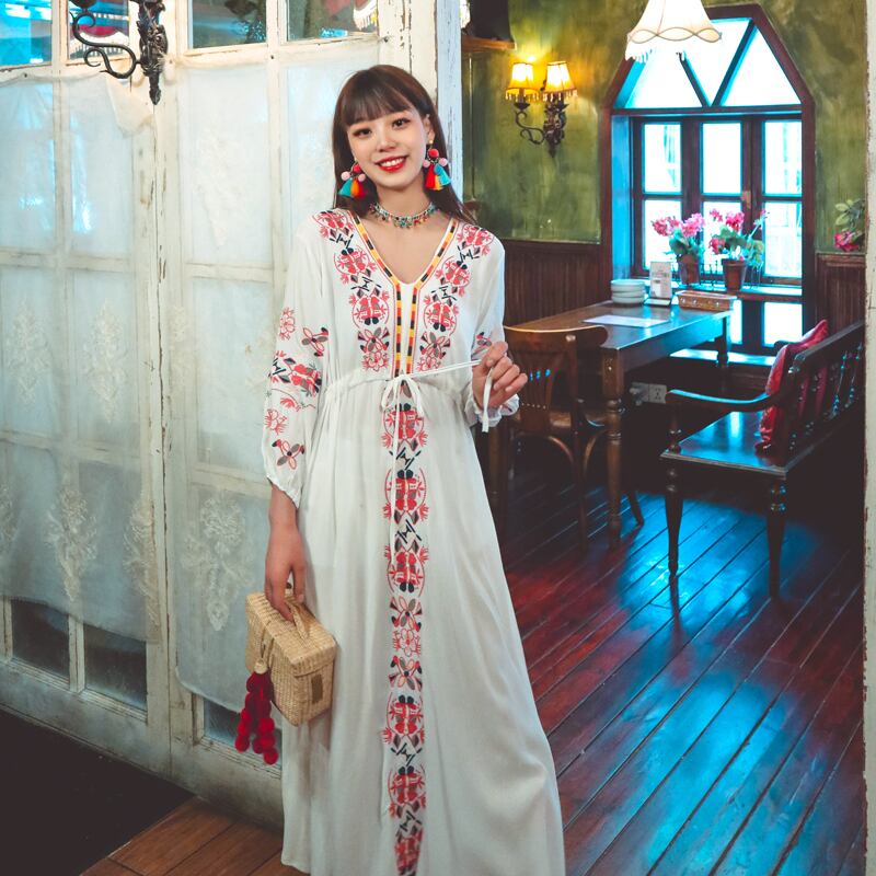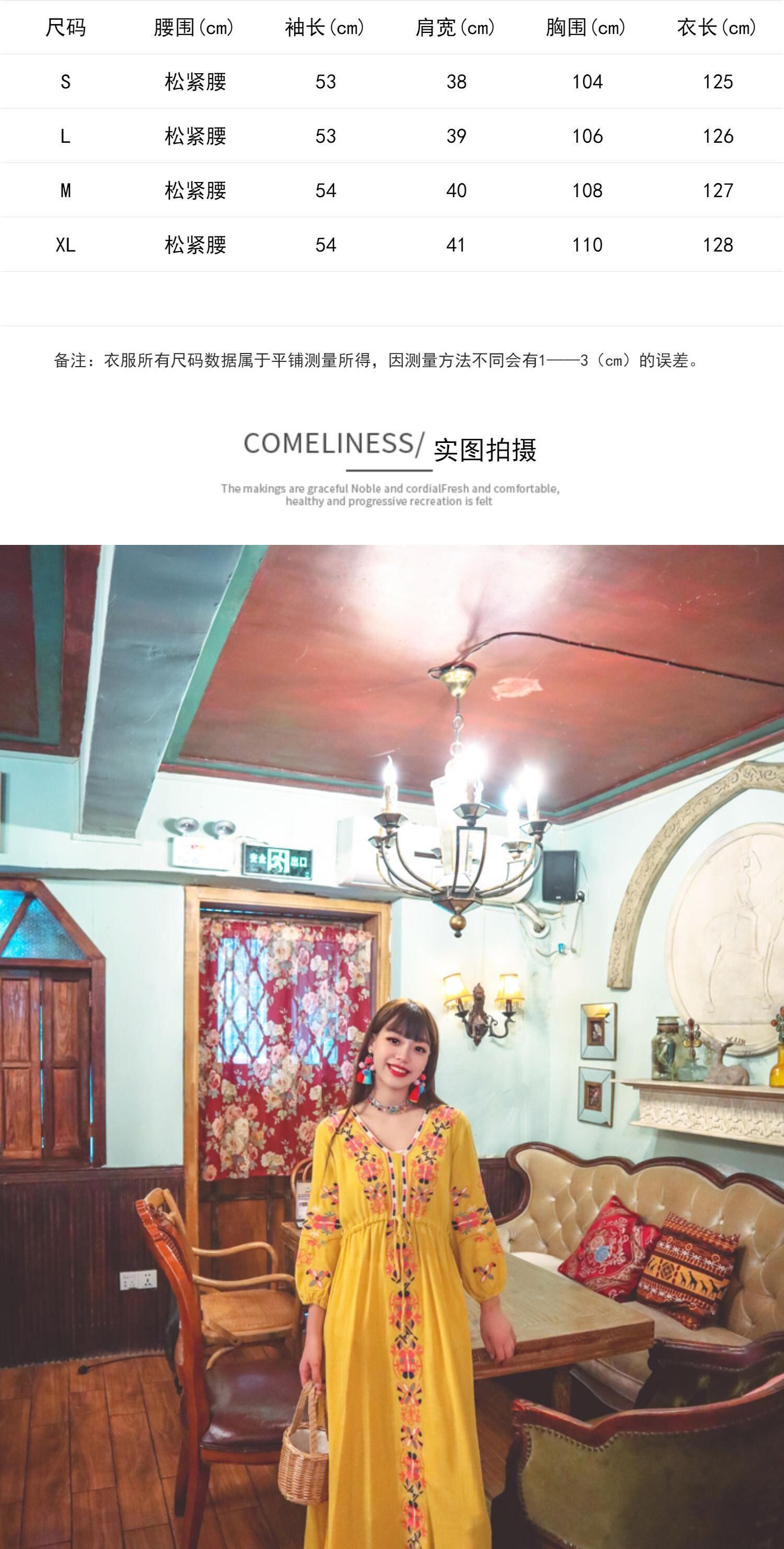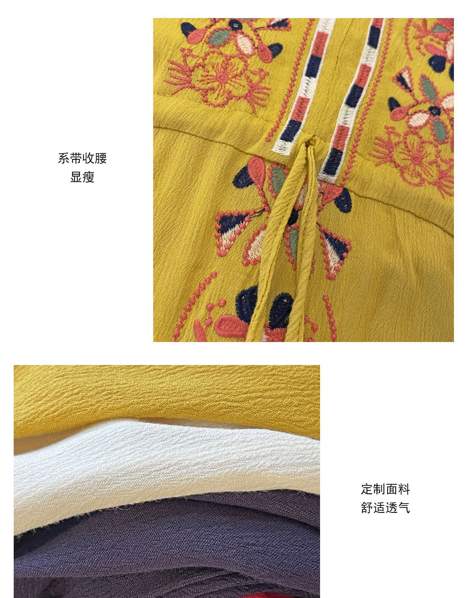 ボヘミアンエスニックスタイルロングスカート 刺繍レースドレス サマー コットン 夏物 レースアップ 延命家ファッション35556467708