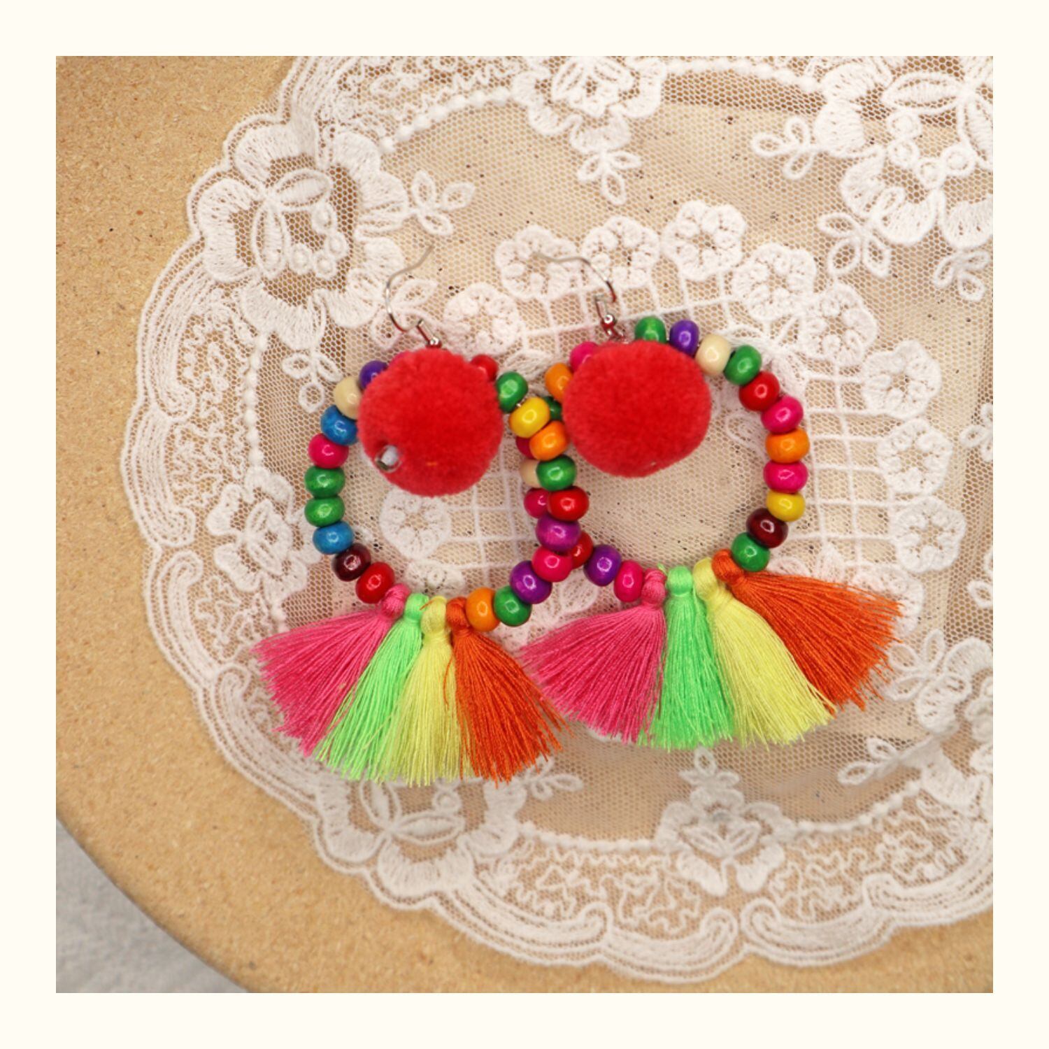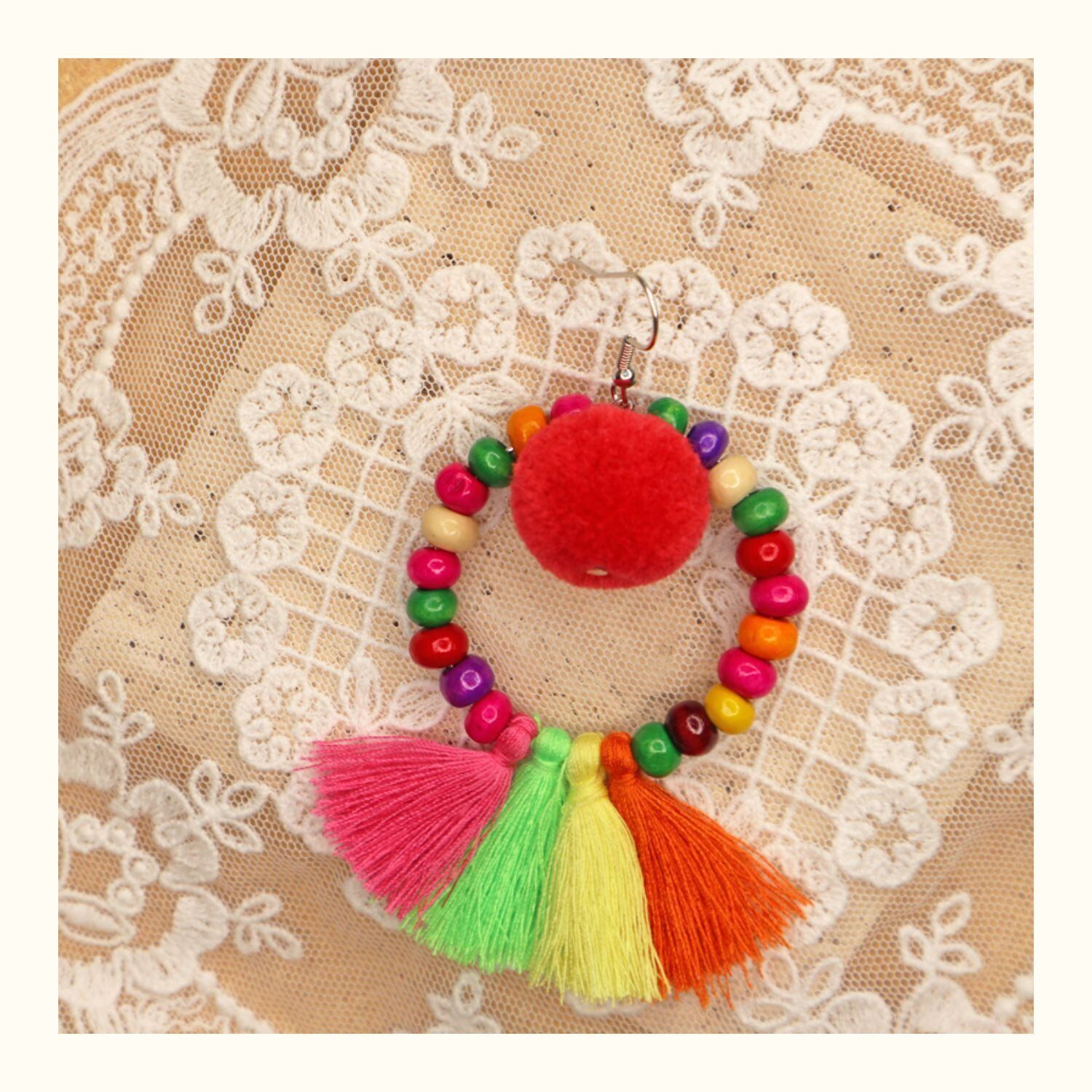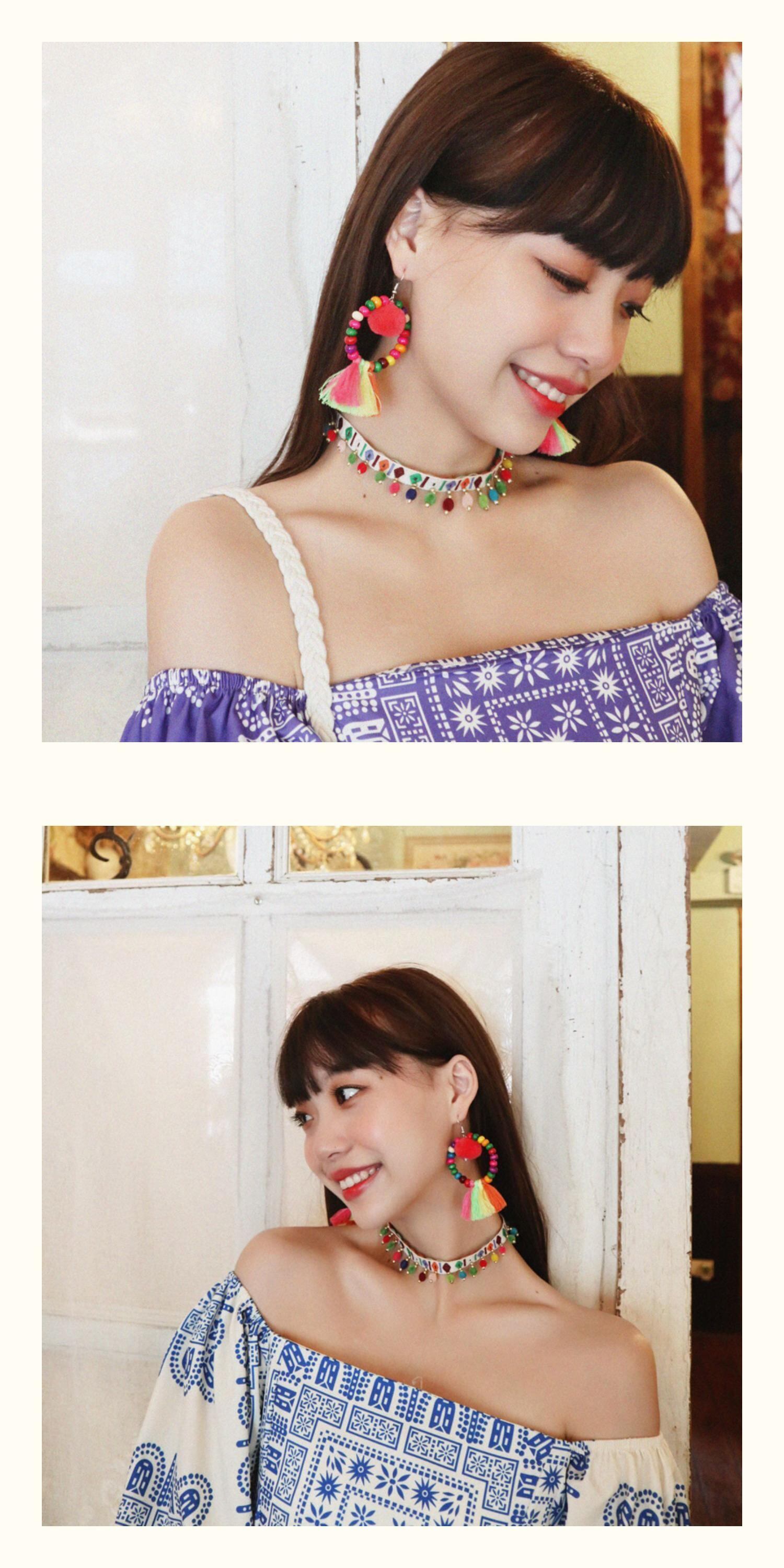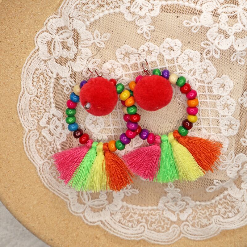 スプリングサマーエスニックスタイルイヤリング ボヘミアンスタンダード レッド レトロ 春物 夏物 指輪 延命家ファッション15881620569