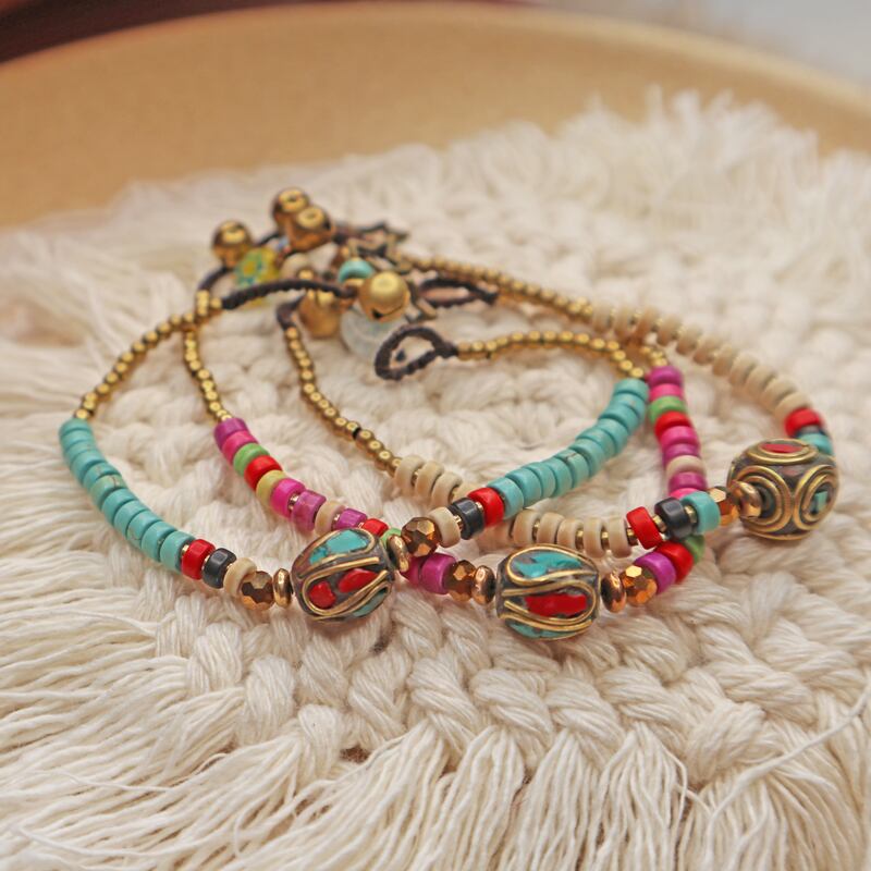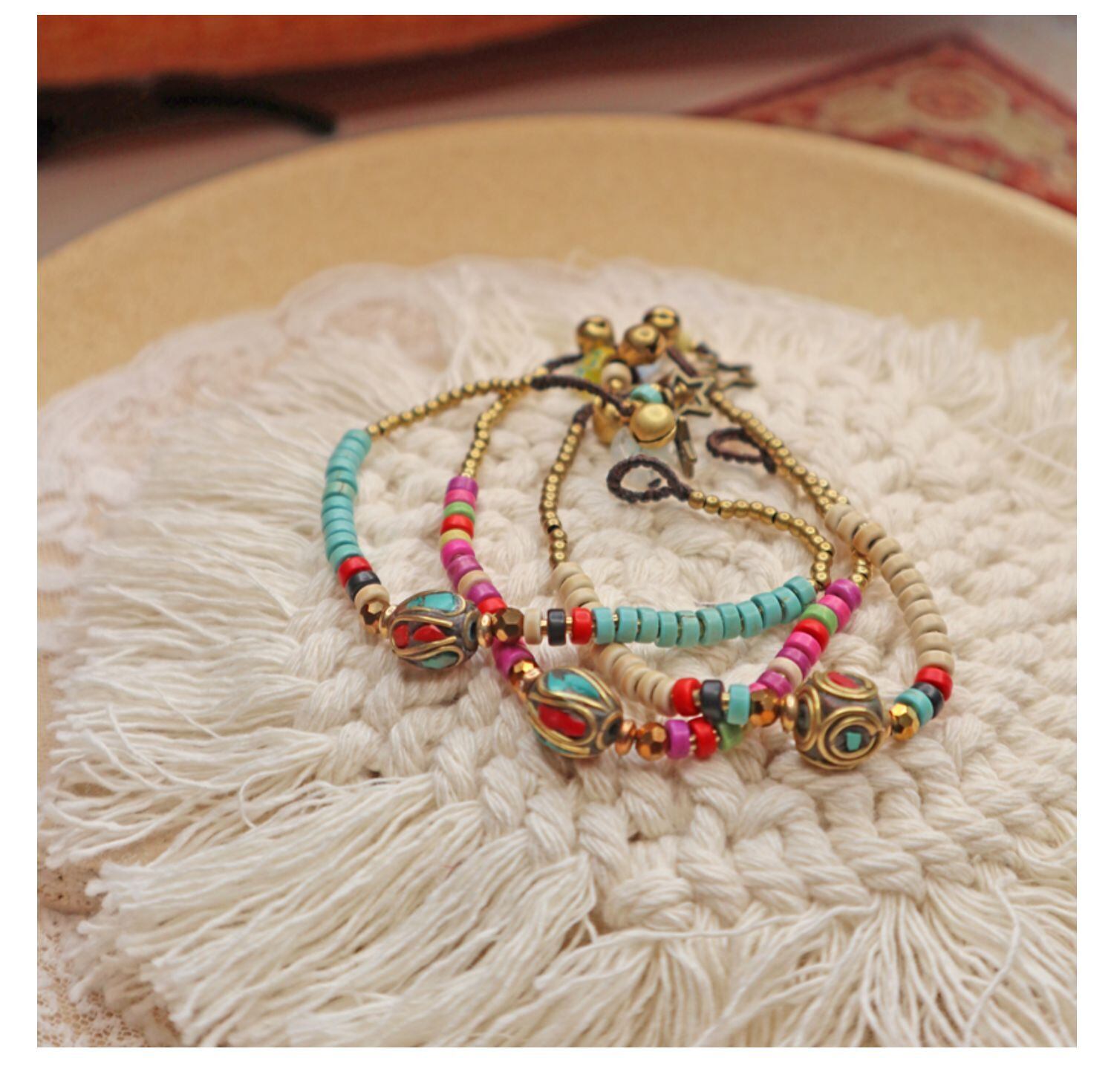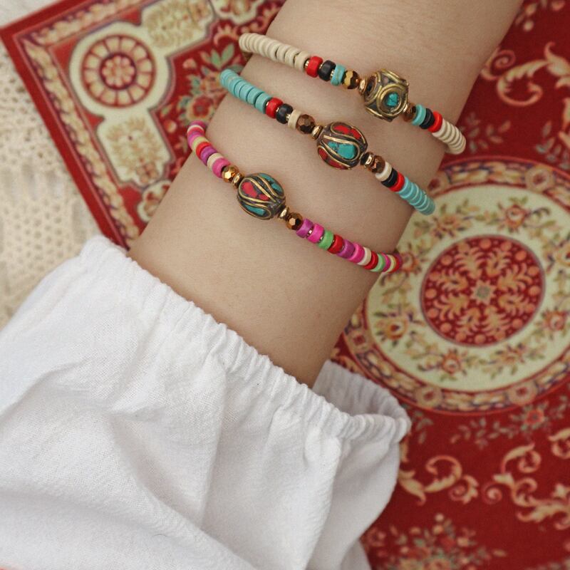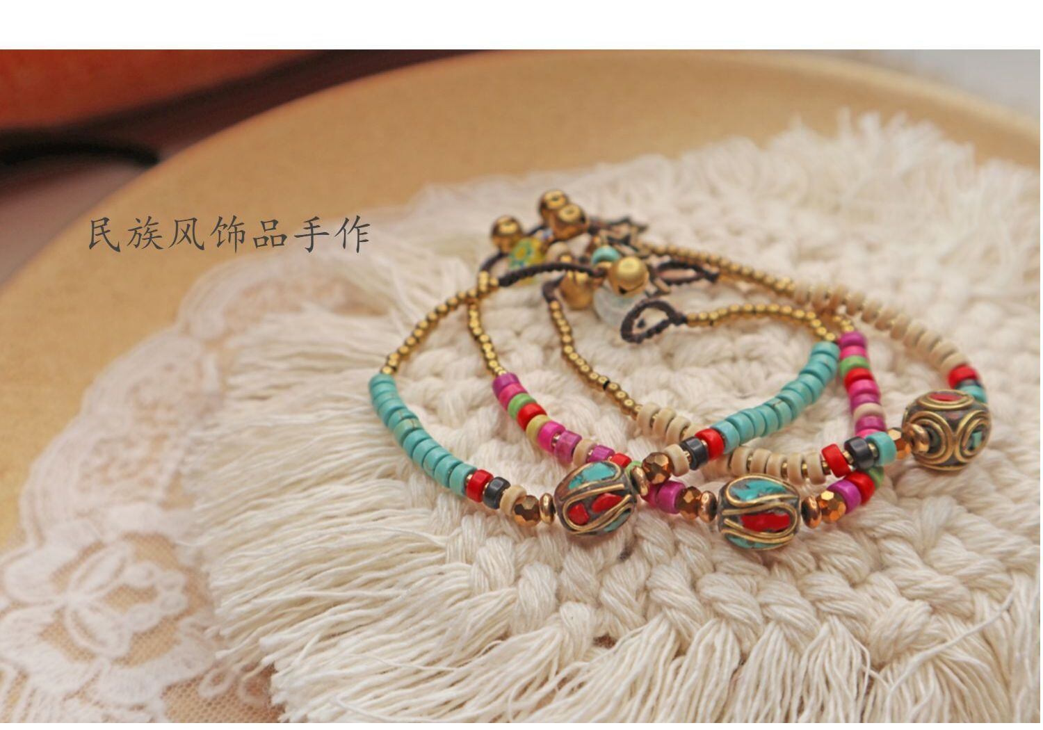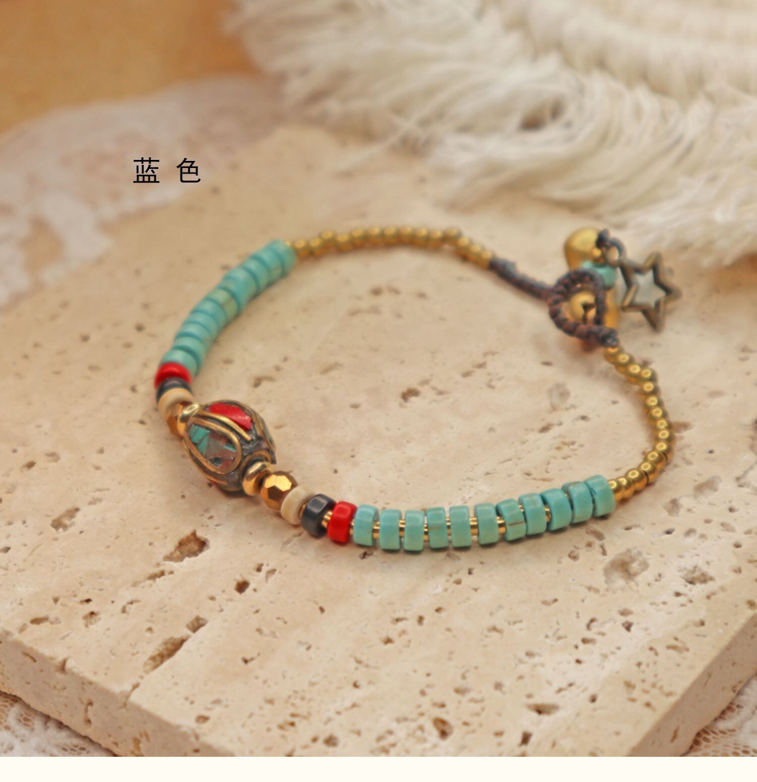 エスニックアクセサリー ビーズ ブレスレット レディース レトロ ターコイズ 延命家ファッション104825549