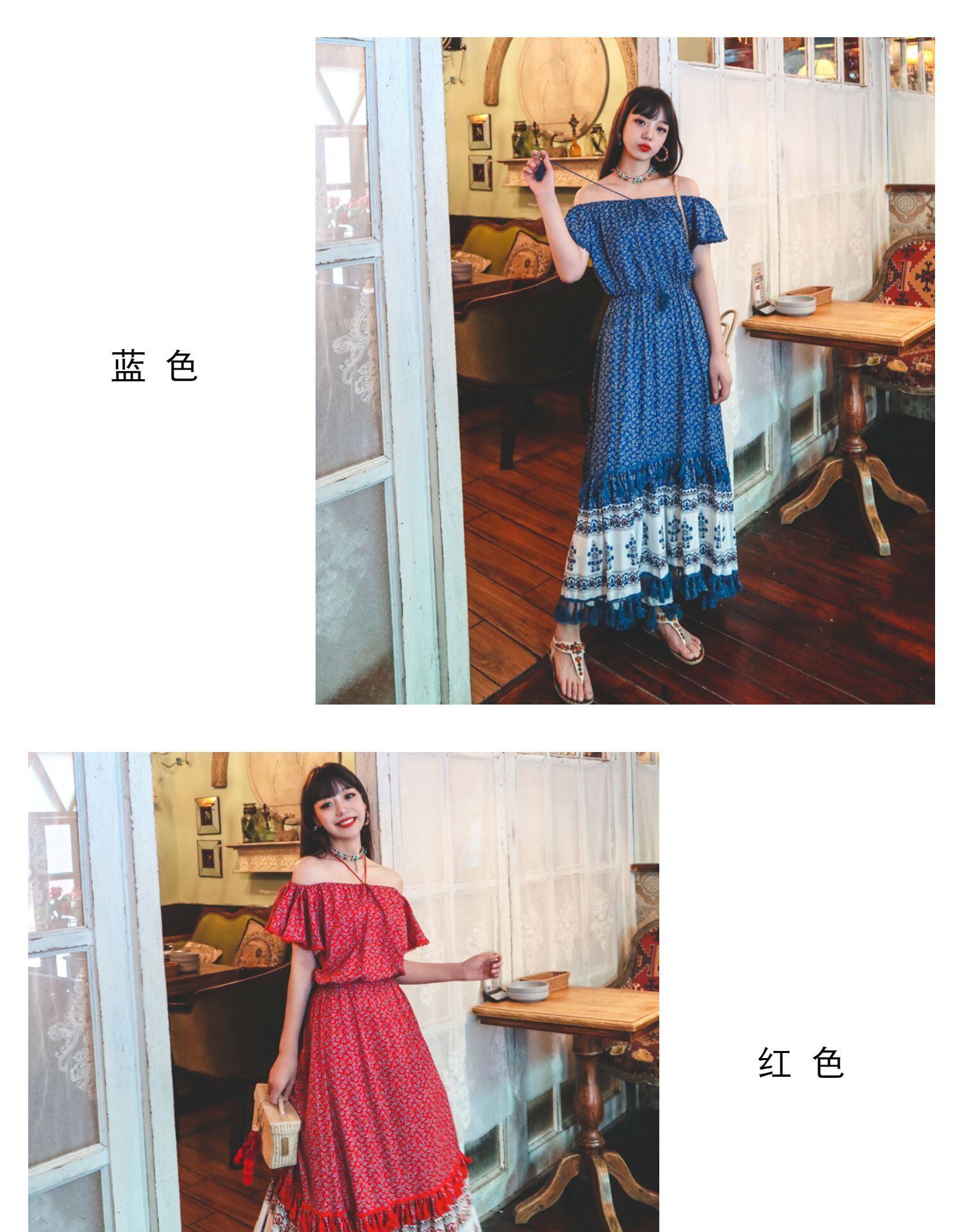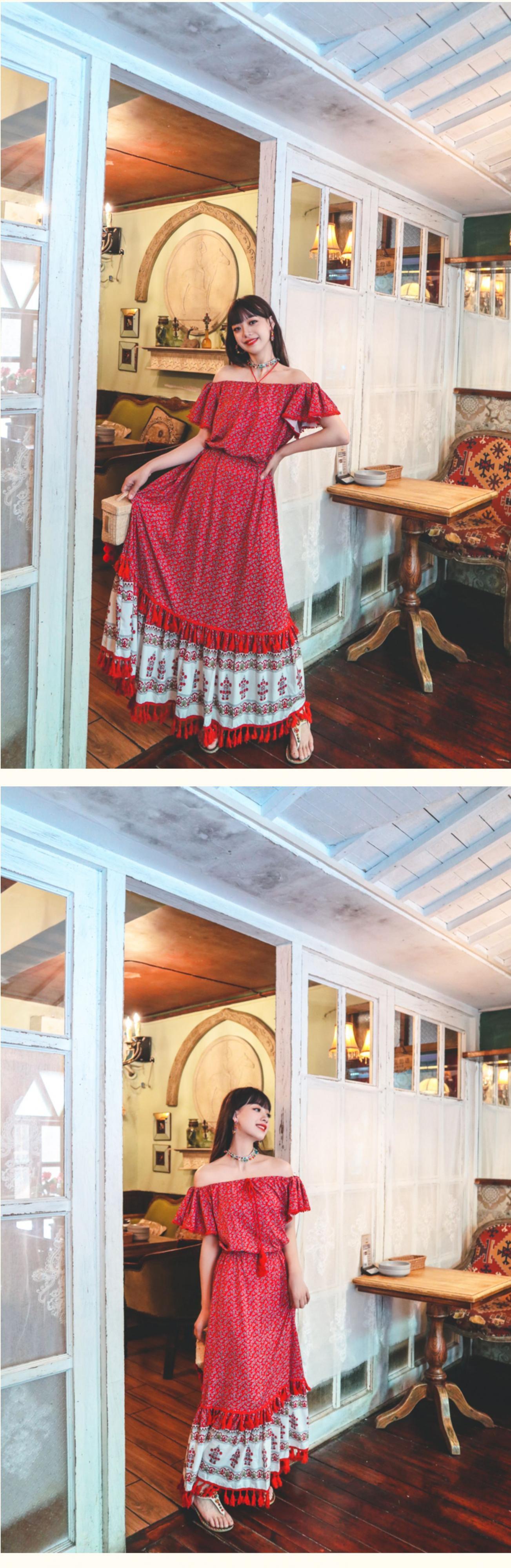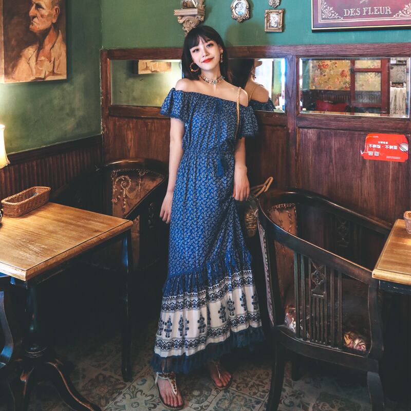 スタンダードエスニックプリント柄ロングスカート ドレス サマー レトロ 夏物 延命家ファッション81267420554