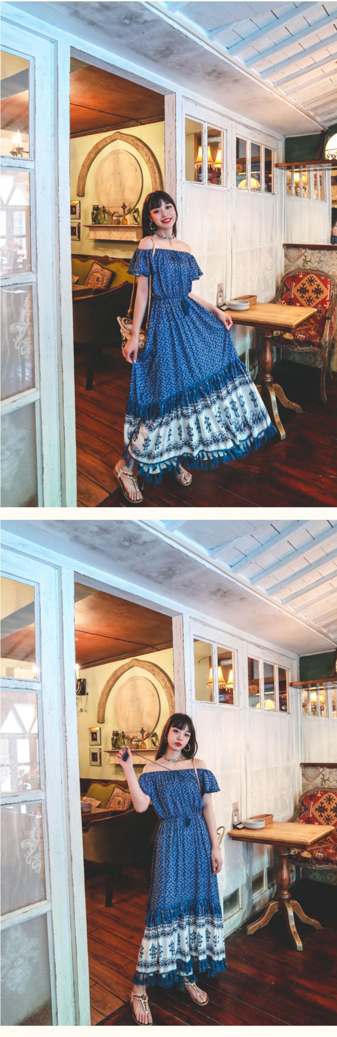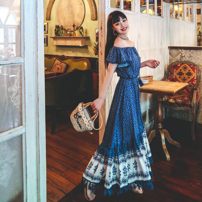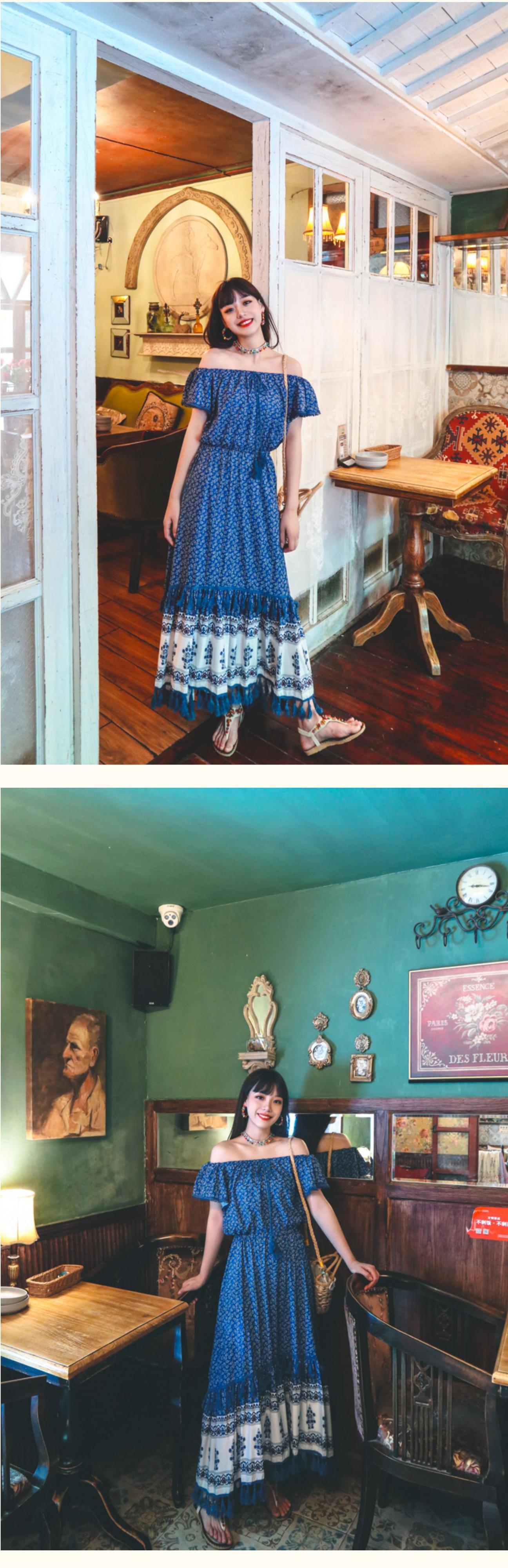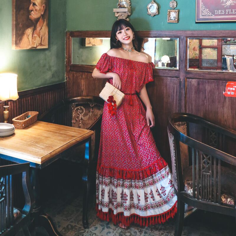 スタンダードエスニックプリント柄ロングスカート ドレス サマー レトロ 夏物 延命家ファッション81267420554