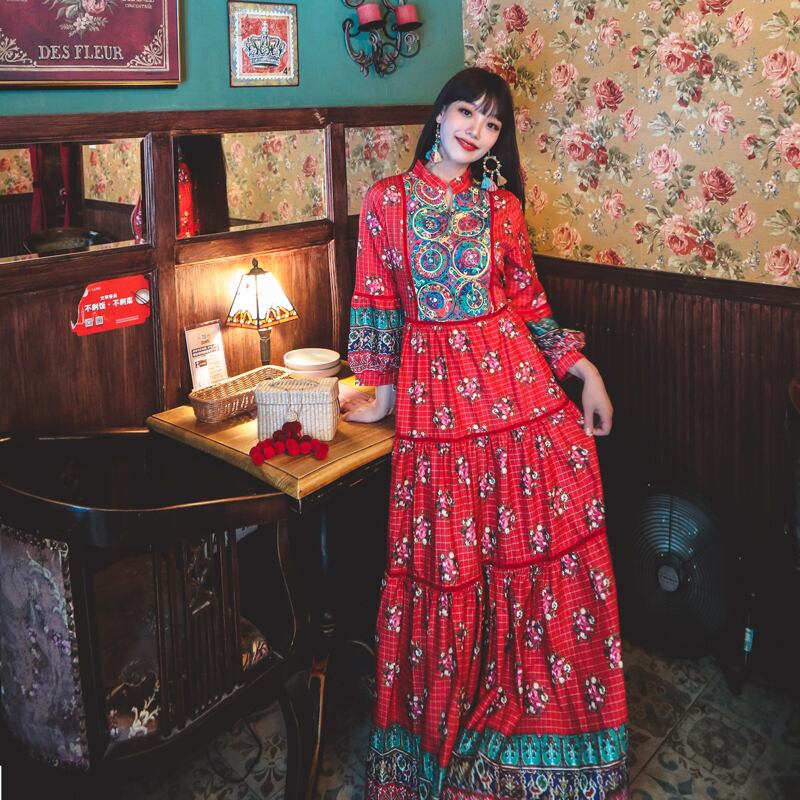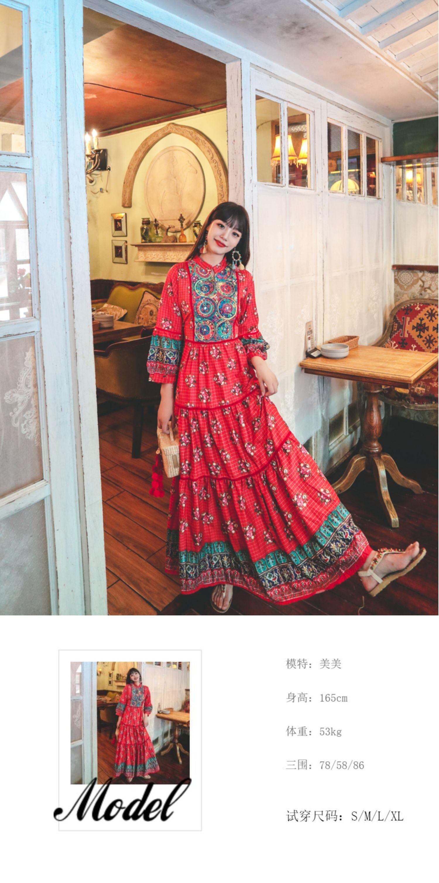 レッドドレス エスニック刺繍スタンダードサマー レトロ 夏物 延命家ファッション17753774644
