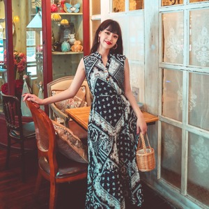 ボヘミアンスタンダードスタイルエスニックロングスカート プリント柄ウェストドレス レトロ ステッチ 延命家ファッション82772715364