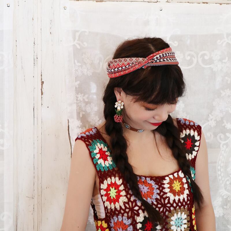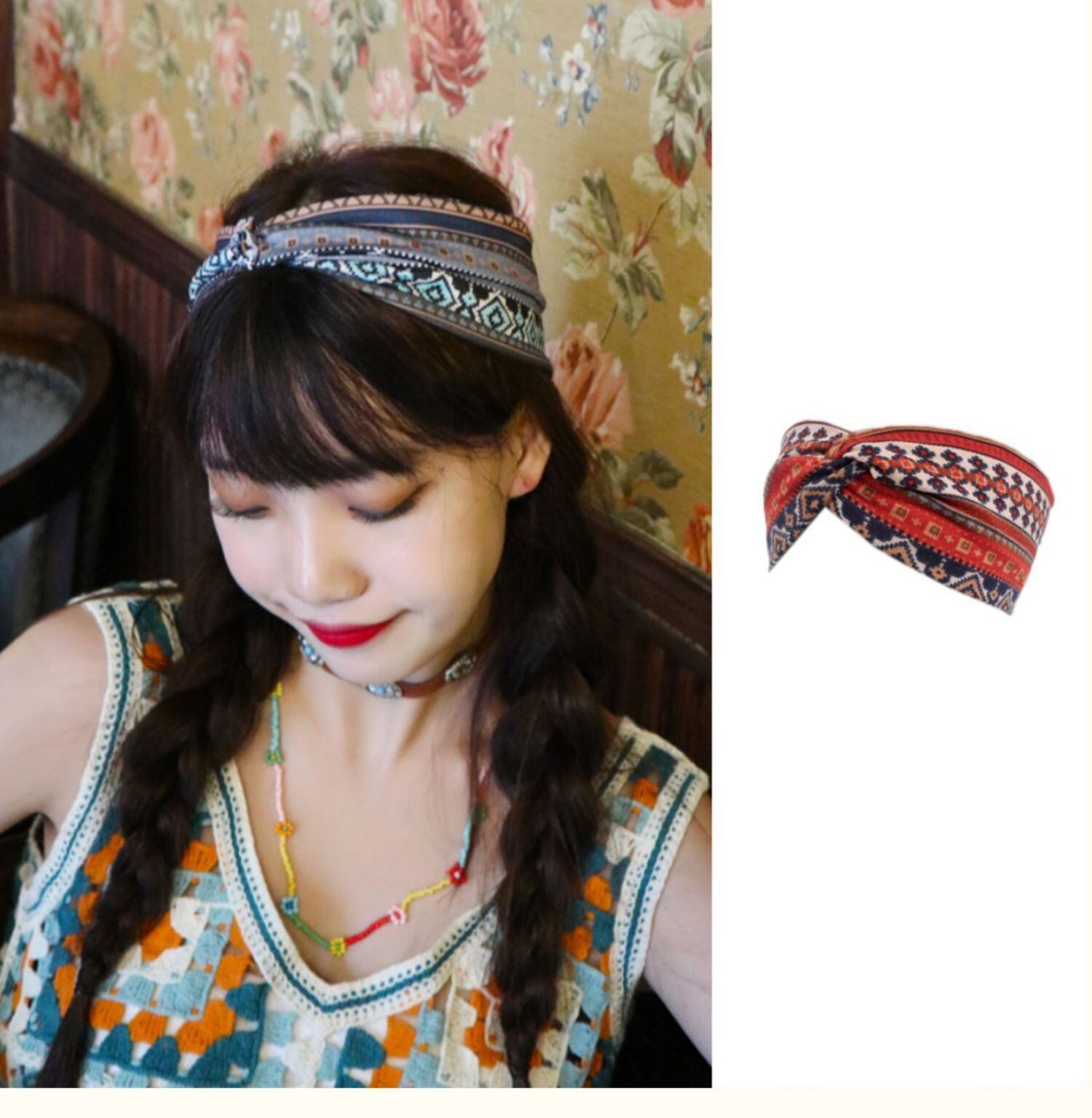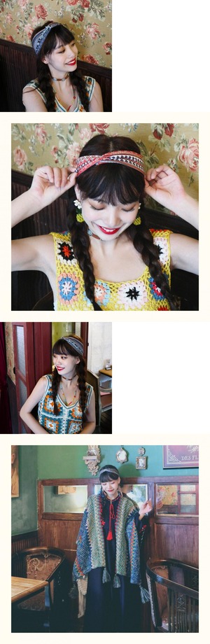 エスニックスタイルストレッチカラーボヘミアンヘアバンド アクセサリー エラスティック 伸縮 ヘアアクセサリー 延命家ファッション72367904277
